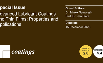 Zapraszam do publikacji artykułów w recenzowanym czasopiśmie Coatings w ramach wydania specjalnego zatytułowanego: Advanced Lubricant Coatings and Thin Films: Properties and Applications.