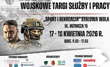 Ministerstwo Obrony Narodowej, Centralne Wojskowe Centrum Rekrutacji, Miasto Stalowa Wola zapraszają 17 i 18 kwietnia 2026 r. na Wojskowe Targi Służby i Pracy w Stalowej Woli.