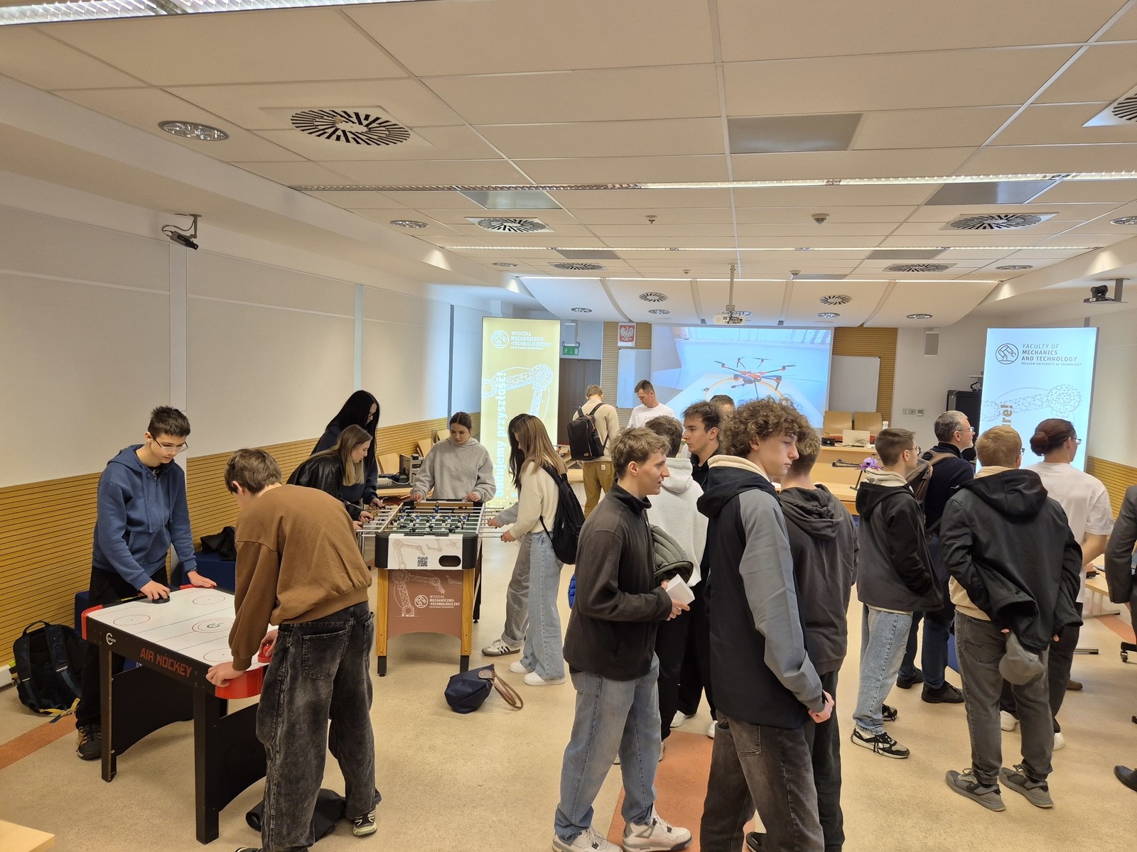 Studenci chętnie odpowiadali na pytania wszystkich zainteresowanych, dzieląc się swoimi doświadczeniami oraz opowiadając o codziennym życiu akademickim. Dzięki ich zaangażowaniu odwiedzający mogli uzyskać rzetelne informacje i lepiej poznać możliwości, jakie oferuje Wydział Mechaniczno-Technologiczny.