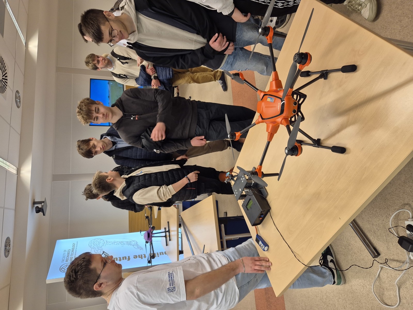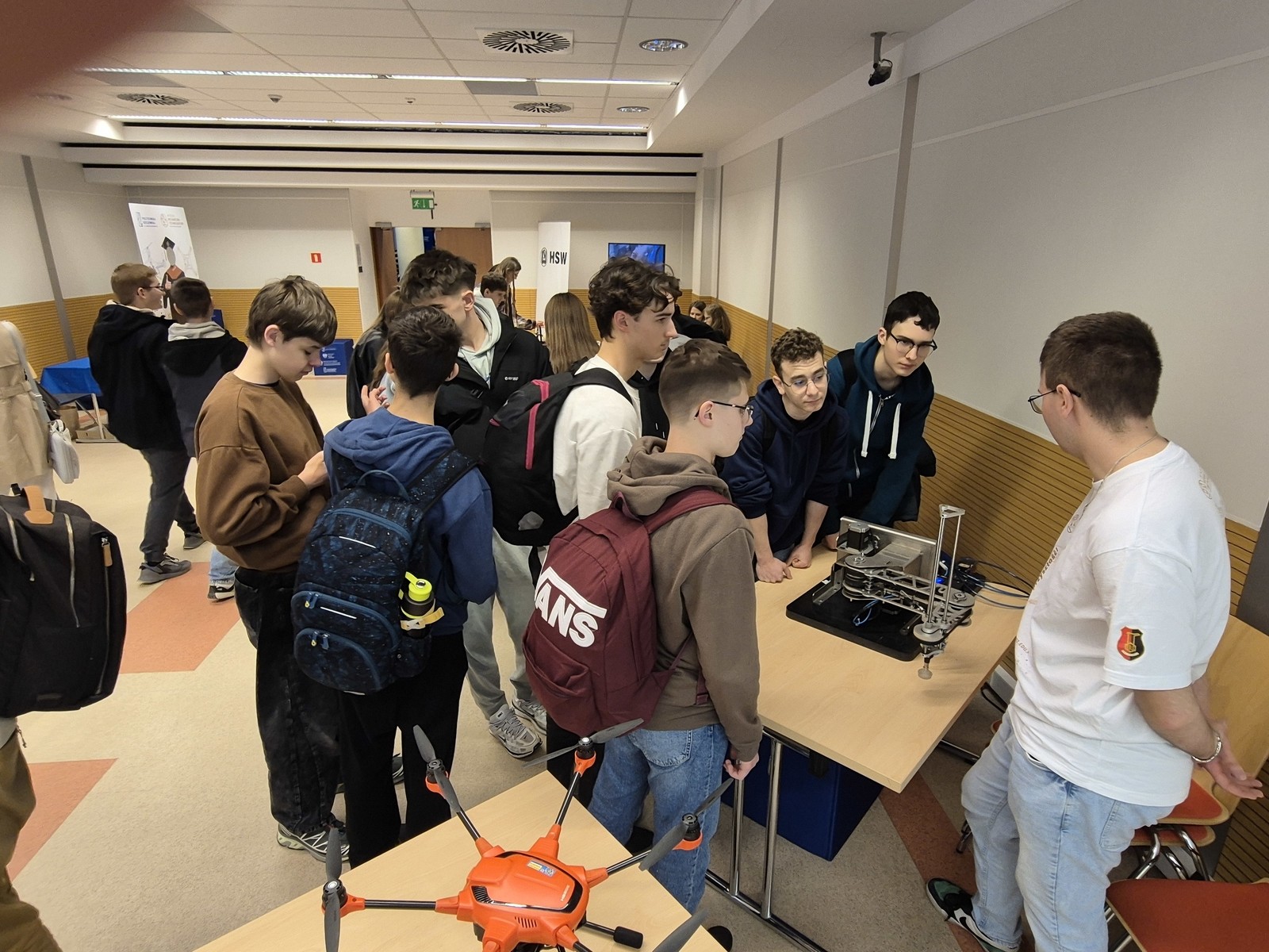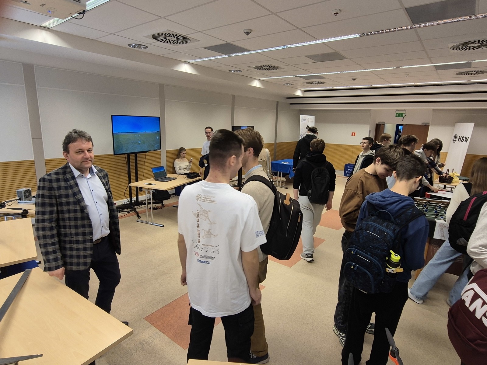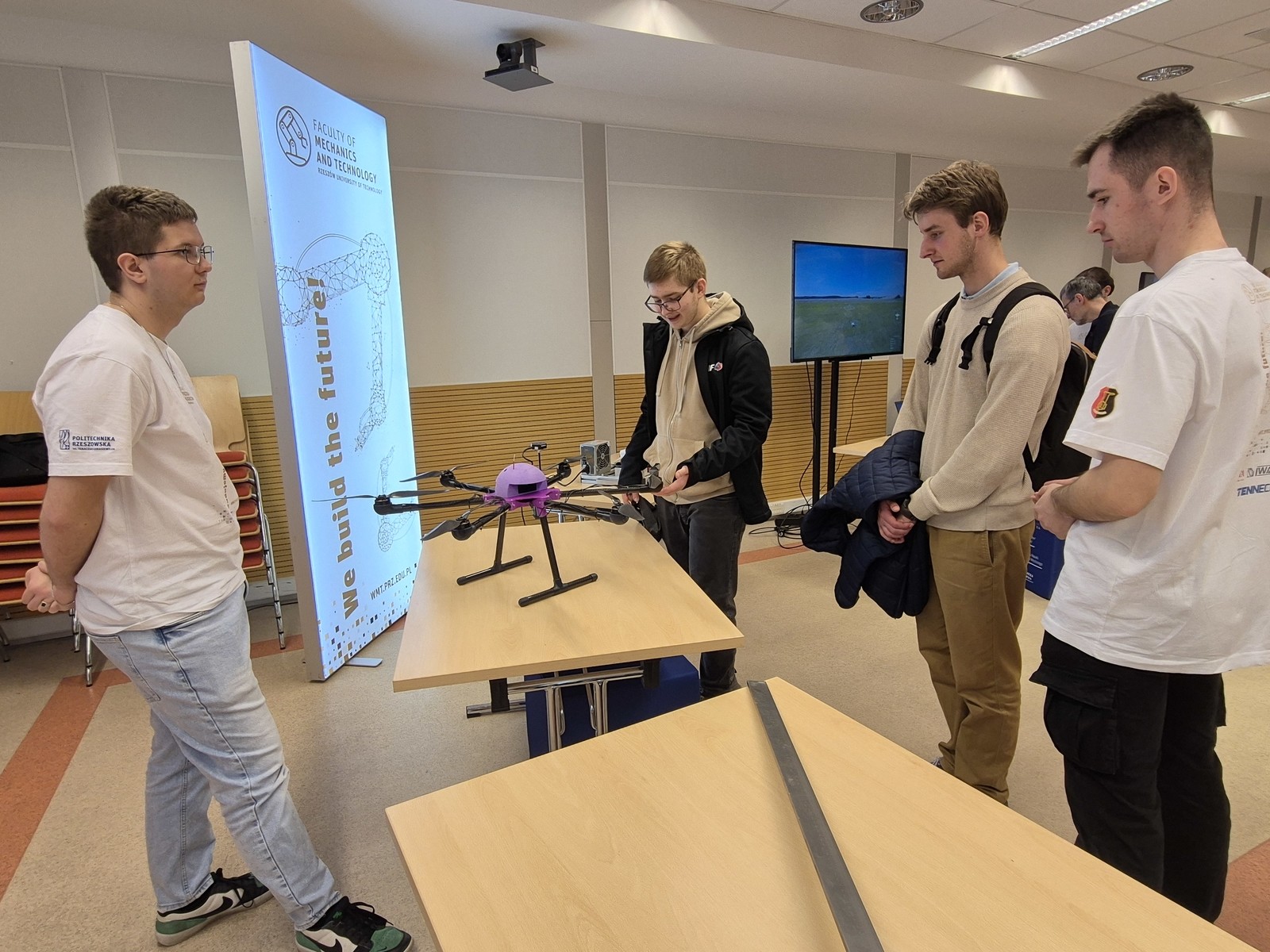 Odwiedzający mogli zobaczyć m.in. drony, przyrządy metrologiczne, robota typu SCARA, a także symulator latania, który cieszył się dużym zainteresowaniem uczestników wydarzenia. Prezentacje nie tylko przyciągały uwagę, ale również umożliwiały bezpośrednie zapoznanie się z praktycznym zastosowaniem wiedzy zdobywanej na studiach.