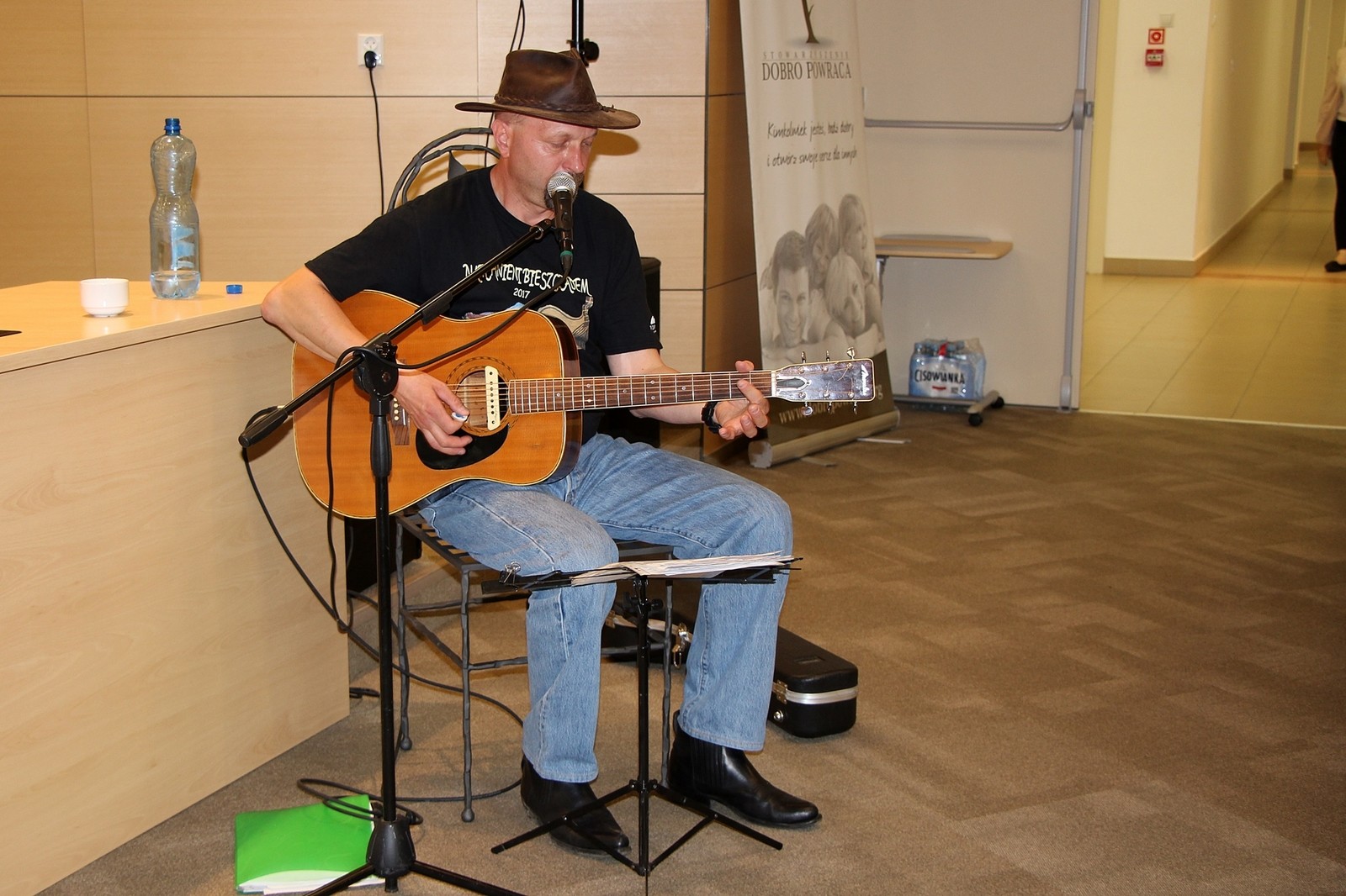 Na scenie zaprezentował się podczas spotkania autorskiego poeta Józef „Czarny” Bilski, którego występ był połączony z koncertem gitarzysty Andrzeja Czyża. Można było również usłyszeć piosenki i przyśpiewki ludowe w wykonaniu Kapeli Łemkowyna z Cisnej, a także poezję śpiewaną w wykonaniu Mariusza Dzioba oraz wiersze Grażyny Jarzyńskiej w oprawie muzycznej Piotra Ruta. Następnie atrakcji dostarczyli gitarzyści Krzysztof Karasiński, Maciej Jóźwik oraz Piotra Rogala „Rogalik”. Zwieńczeniem wieczoru był występ zespołu „Grzane Wino” z Rzeszowa, zdobywcy pierwszego miejsca na Przeglądzie Piosenki „Natchnieni Bieszczadem 2017”.