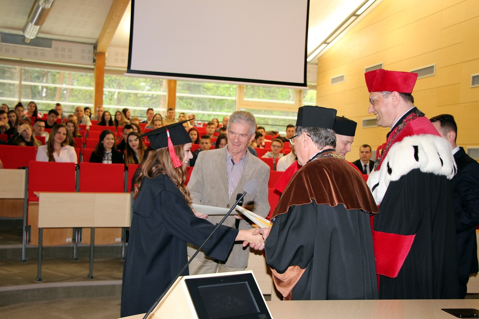 Impreza ta została połączona z uroczystą graduacją absolwentów IV roku kierunku: mechanika i budowa maszyn oraz zarządzanie i inżynieria produkcji Wydziału Budowy Maszyn i Lotnictwa Politechniki Rzeszowskiej, którzy ukończyli studia inżynierskie pierwszego stopnia w Stalowej Woli. Dyplomy absolwentom uroczyście wręczyli: prorektor ds. kształcenia dr hab. inż. Grzegorz Masłowski, prof. PRz, dziekan WBMiL prof. dr hab. inż. Jarosław Sęp oraz dziekan WMT dr hab. inż. Aleksander Mazurkow, prof. PRz. Ponadto, dla najlepszych studentów WBMiL i WMT firma Liugong Dressta Machinery Sp. z o.o. ufundowała stypendia stażowe, których wręczenie odbyło się przez przedstawiciela przedsiębiorstwa. Po części oficjalnej odbyło się losowanie atrakcyjnych upominków i nagród ufundowanych przez Politechnikę Rzeszowską i firmy uczestniczące w Dniu Otwartym Wydziału Mechaniczno-Technologicznego, co wywołało spore emocje wśród licznie zgromadzonej młodzieży ponadgimnazjalnej.