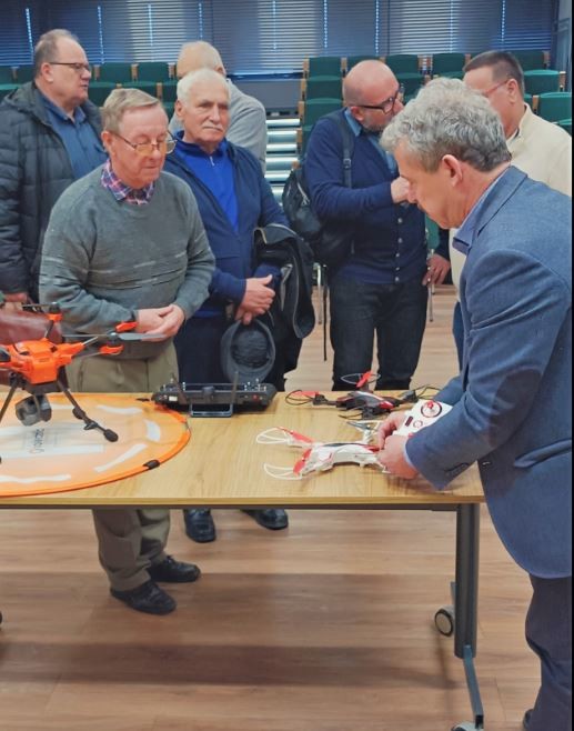 Co łączy babcie, dziadków i wnuków? Chęci zdobywania wiedzy, ciekawość, ale też współczesne technologie. Kto powiedział, że dziadkowie nie mogą przenieść się do świata wirtualnego? Czy dziadkowie potrafią latać dronami? A czy wnuczkowie poradzą sobie w laboratorium chemicznym wśród tych wszystkich bulgocących menzurek? Dzisiejszy dzień udowodnił, że to wszystko jest możliwe. Razem z Centrum Aktywności Seniora w Stalowej Woli, Wydział Mechaniczno-Technologiczny Politechniki Rzeszowskiej połączył siły i zorganizował edukacyjny dzień Babci i Dziadka. Okazuje się, że nie tylko najmłodsi zadają ciekawe pytania. Seniorzy także czują się jak ryba w wodzie pilotując drony czy przemieszczając się w kosmos za pomocą gogli VR. W wydarzenie wprowadził nas dziekan dr. hab. Andrzej Trytek, prof. PRz, który w swoim wykładzie przypomniał jak wyglądało studenckie życie seniorów i jak wiele zmieniło się w ciągu ostatnich dekad w kształceniu przyszłych inżynierów. Nie zabrakło też poczęstunku w postaci słodkich ciasteczek z logo naszego Wydziału. Wielki szacun też dla studentów WMT, którzy znaleźli wspólny język zarówno z wnukami jak i seniorami i tak wspaniale poradzili sobie prowadząc ciekawskich gości po wirtualnym świecie.