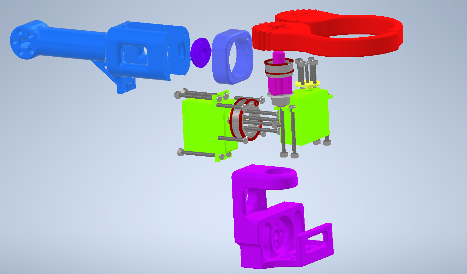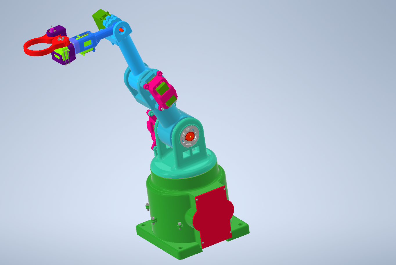 - projekt CAD robota i dobór takich elementów mechanicznych jak łożyska, przekładnie i serwonapędy,
