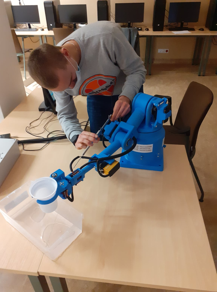 Wykonany w programie CAD model robota został podczas wakacji 2020 roku wydrukowany na Wydziale. W procesie tym uczestniczyło wielu studentów, którzy nadzorowali ten proces. Wydruk wszystkich elementów trwał bowiem ponad miesiąc czasu. Po rozwiązaniu licznych problemów technicznych udało się ostatecznie wydrukować wszystkie elementy składowe i połączyć je w całość razem z elementami mechanicznymi i elektrycznymi.