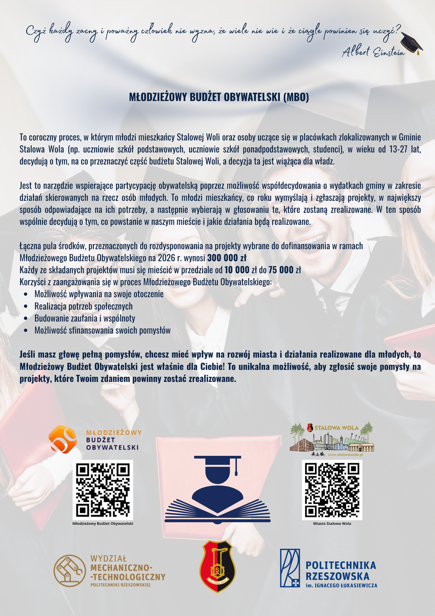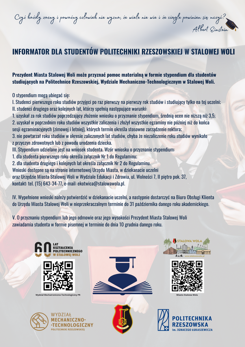 Zachęcamy Was, drodzy studenci do zapoznania się informacjami na temat stypendiów, Młodzieżowego Budżetu Obywatelskiego oraz Społecznej Inicjatywie mieszkaniowej.