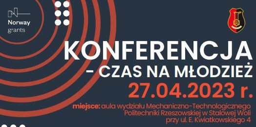 W imieniu Prezydenta Miasta Stalowej Woli – Pana Lucjusza Nadbereżnego serdecznie zapraszamy na „KONFERENCJĘ – CZAS NA MŁODZIEŻ", która odbędzie się w dniu 27.04.2023 r. na Politechnice Rzeszowskiej w Stalowej Woli, realizowaną w ramach projektu pt.: "MODELOWE ROZWIĄZNIA NA TRUDNE WYZWANIA – Plan Rozwoju Lokalnego i Instytucjonalnego Stalowej Woli", dofinansowanego z Norweskiego Mechanizmu Finansowego 2014-2021 (85%) oraz budżetu państwa (15%). Wydarzenie ma charakter promocyjno-informacyjny i skierowane jest do uczniów szkół ponadpodstawowych, zlokalizowanych na terenie Stalowej Woli.