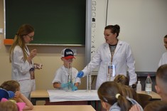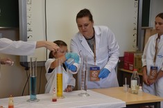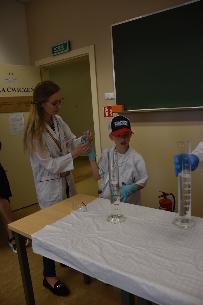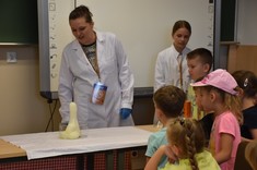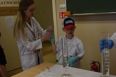 U progu akademickich wakacji, 12 lipca 2022 r., na przygodę z nauką wyruszyły przedszkolaki ze stalowowolskiego przedszkola "Chatka Misia". Zajęcia rozpoczęły się od warsztatów i pokazów chemicznych poprowadzonych przez dr Agnieszkę Kramek, mgr inż. Justynę Gumieniak oraz Amelię.