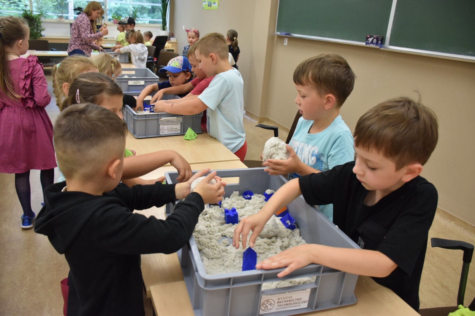 Dzieci miały też okazję pobawić się w piaskownicy. Podczas zajęć "Nie ma to jak piaskownica" powstały piękne zamki otoczone fosą i inne fortyfikacje. Dzieciaki popisały się kreatywnością i świetnymi umiejętnościami konstrukcyjnymi. Foremki, z których korzystali mali inżynierowie, zostały wykonane za pomocą druku 3D.