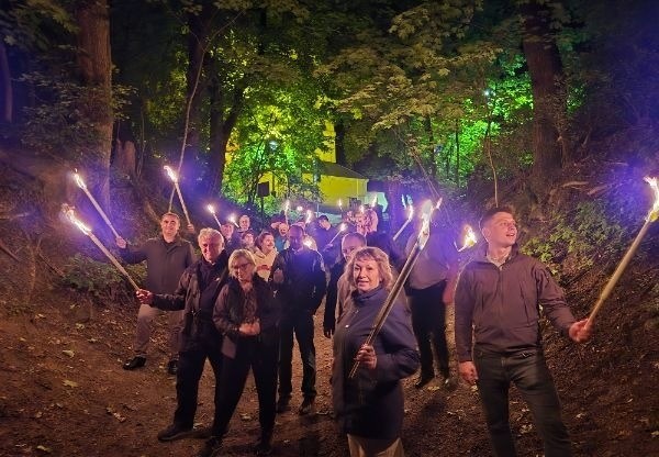 W trakcie tego wieczoru uczestnicy wybrali się na nocne zwiedzanie Sandomierza, które zakończyło się spacerem z pochodniami w Wąwozie Królowej Jadwigi.