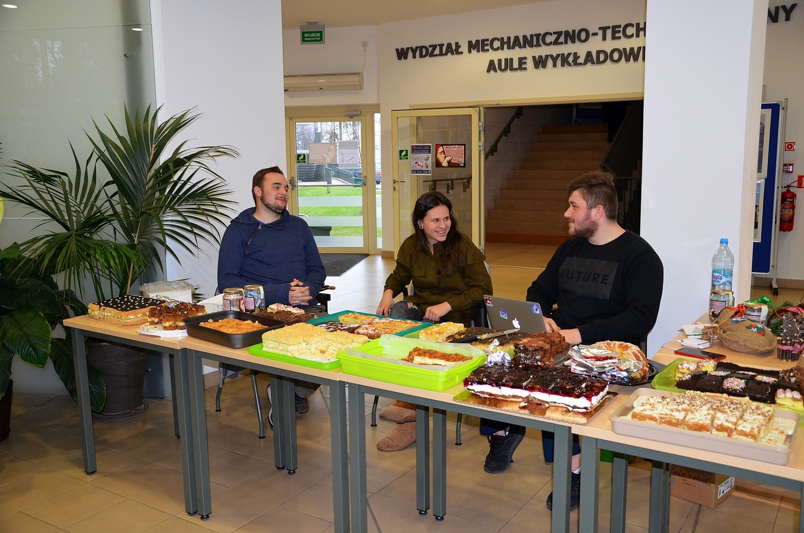W dniu 6 grudnia 2017 r. studenci i pracownicy Wydziału Mechaniczno-Technologicznego mieli okazję uczestniczyć w wyjątkowej akcji zorganizowanej przez członków Samorządu Studenckiego. Celem było wsparcie uczennicy szkoły średniej poszkodowanej w trakcie tragicznego wydarzenia w Galerii Vivo. Dochód ze sprzedaży ciast i innych słodkości oraz dekoracji świątecznych zostanie przekazany na pokrycie kosztów rehabilitacji. Impreza zorganizowana przez Samorząd była doskonałą okazją do integracji środowiska akademickiego i zachęcenia studentów do udziału w podobnych akcjach w przyszłości. Gratulujemy pomysłu!