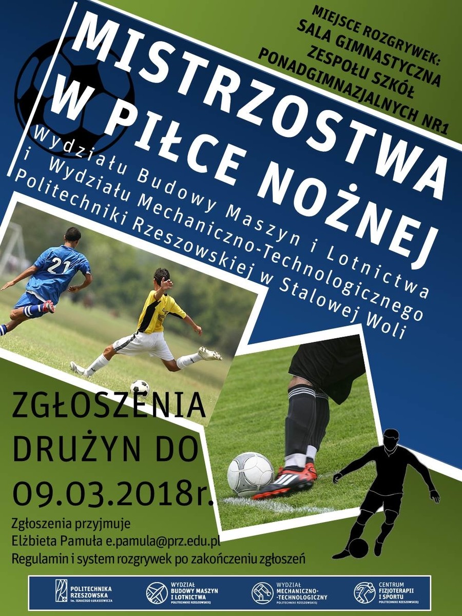 Zgłoszenia z podaniem nazwy drużyny o raz tel. kontaktowego do kapitana należy składać osobiście do Elżbiety Pamuły lub na adres e-mail; e.pamula@prz.edu.pl do 09.03.2018 r.