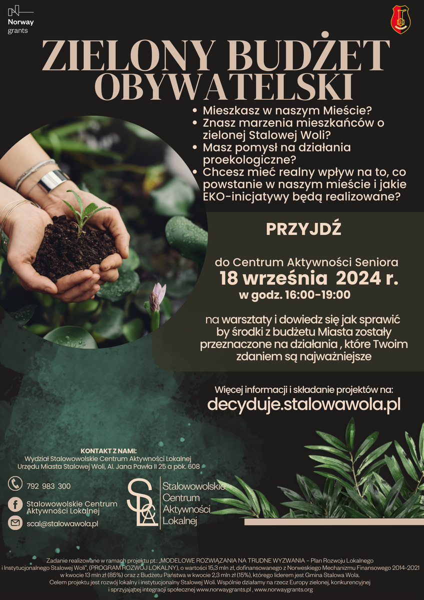 Informacji o obu budżetach oraz wsparcia w przygotowaniu projektów udziela kadra Wydziału Stalowowolskie Centrum Aktywności Lokalnej Urzędu Miasta Stalowej Woli.