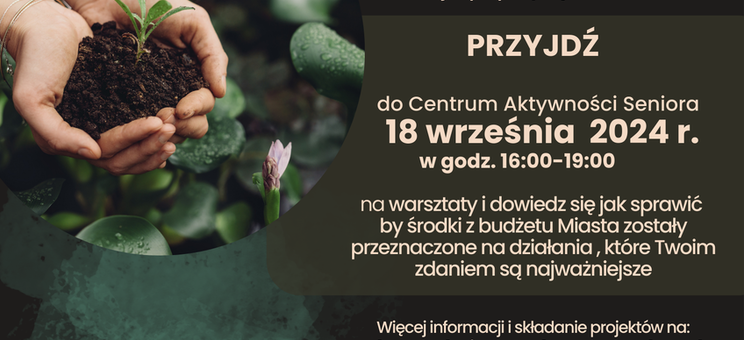 oraz warsztatach dot. składania projektów do Zielonego Budżetu Obywatelskiego (18.09.2024 r. godz. 16:00-19:00 w Centrum Aktywności Seniora).