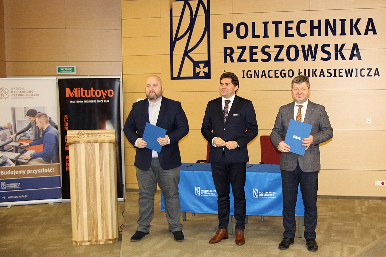 Obok uroczystości otwarcia nowego laboratorium, odbyło się uroczyste podpisanie umowy z firmą Mitutoyo a Wydziałem Mechaniczno- Technologicznym Politechniki Rzeszowskiej. W wydarzeniu wzięli udział Rektor Politechniki Rzeszowskiej – prof. dr hab. inż. Piotr Koszelnik, Prezydent Miasta Stalowej Woli – Lucjusz Nadbereżny oraz Vicepresident Mitutoyo Polska Sp. z o.o. – Jakub Ruszkowski.