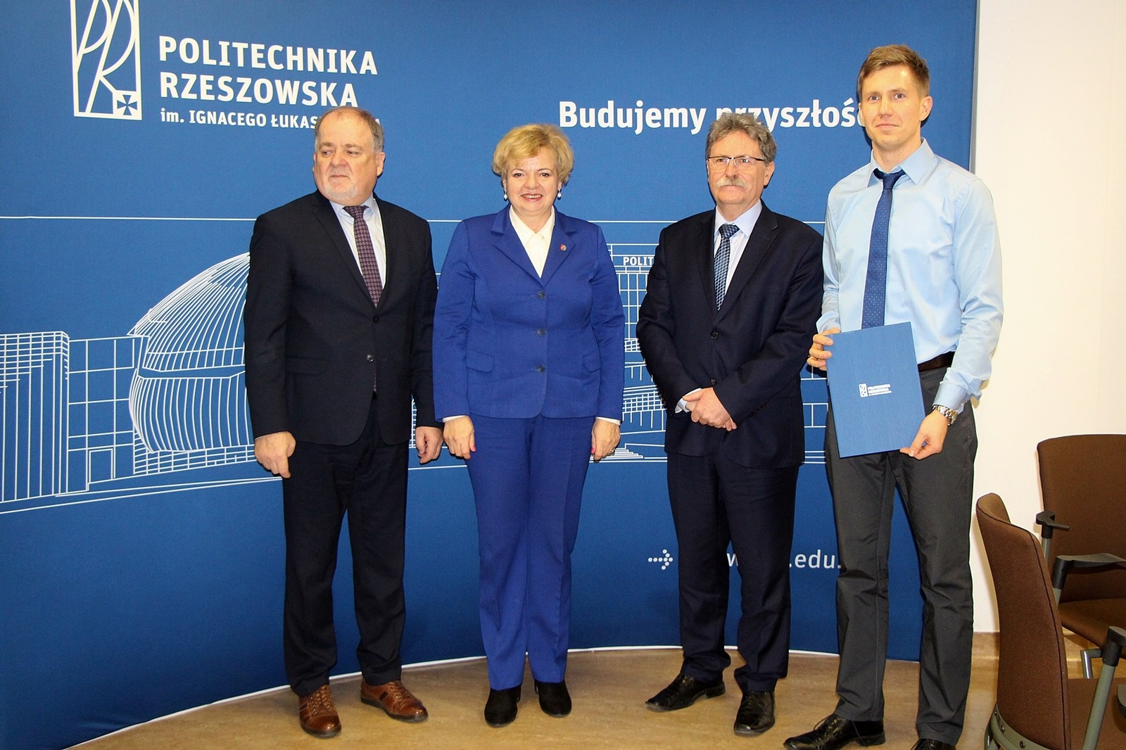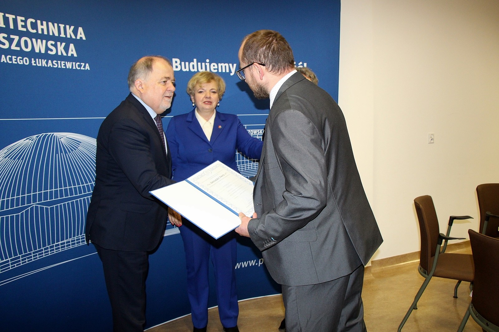 W dniu 10 grudnia 2019 r. odbyło się kolejne posiedzenie Rady Programowej Wydziału Mechaniczno-Technologicznego Politechniki Rzeszowskiej w Stalowej Woli. Zgromadzonych gości i członków Rady powitał Dziekan WMT dr hab. Andrzej Trytek, prof. PRz. Posiedzenie Rady rozpoczęto od wręczenia 28 absolwentom dyplomów ukończenia studiów podyplomowych o specjalności programowanie robotów przemysłowych. Dyplomy wręczali: Ewa Draus Wicemarszałek Województwa Podkarpackiego, Janusz Zarzeczny Starosta Powiatu Stalowowolskiego oraz prof. Aleksander Mazurkow Dziekan WBMiL.