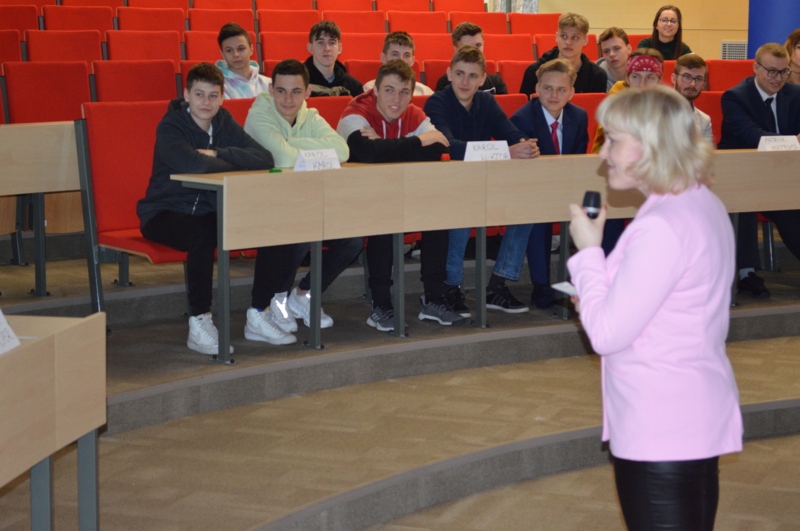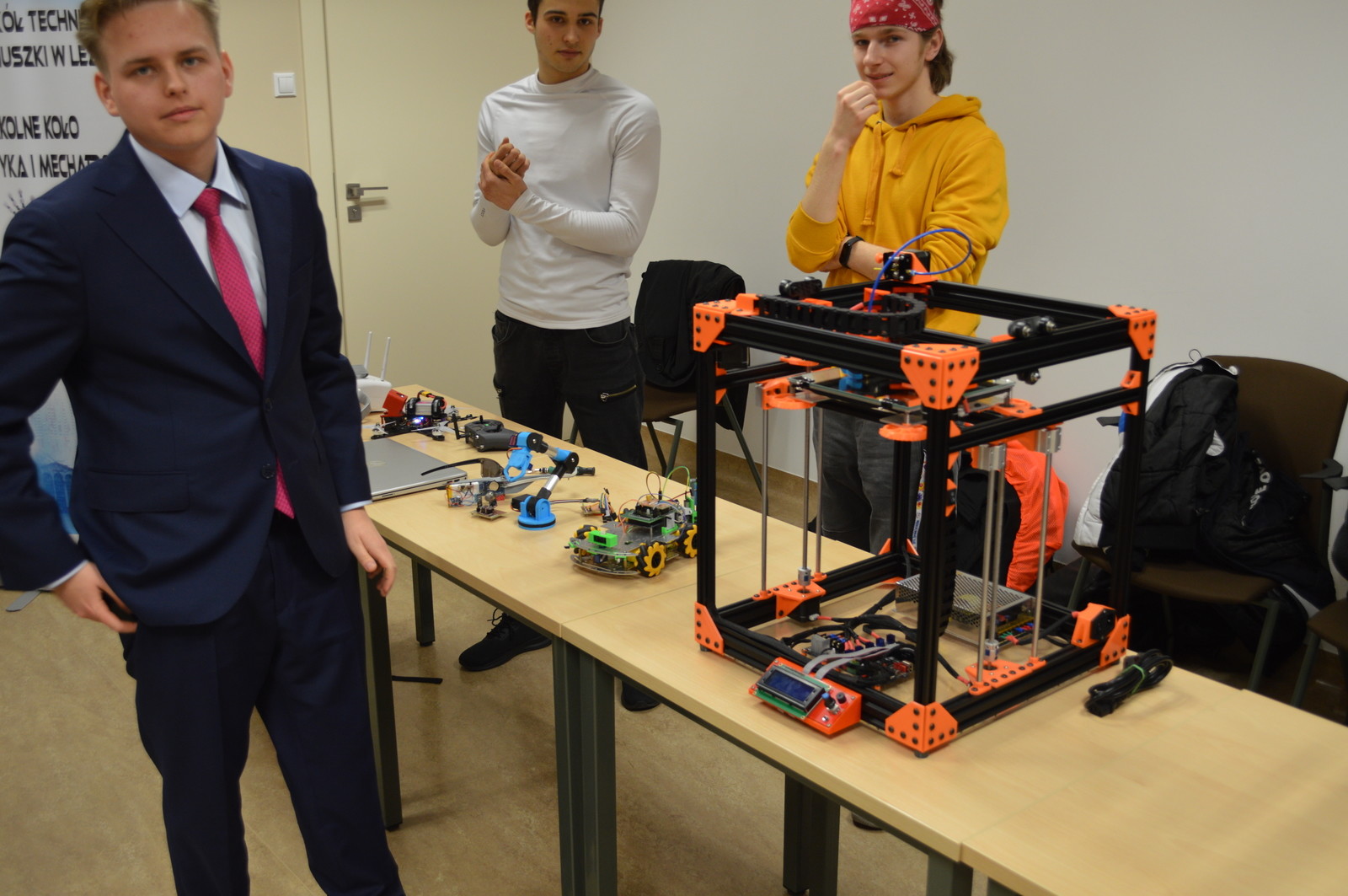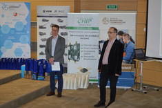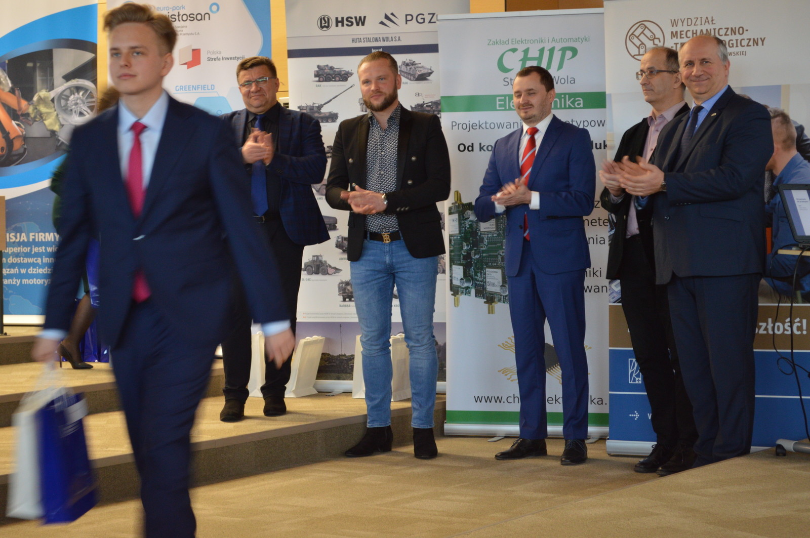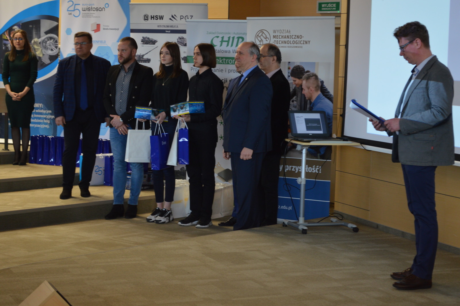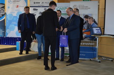 Kolejną osobą, która wygłosiła krótkie przemówienie był pan Romuald Kwieciński – właściciel Zakładu Elektroniki i Automatyki ,,Chip”. Wyraził podziw i radość, że w konkursie wzięli udział zarówno panowie, jak i panie. Słowa uznania skierował do uczestników konkursu i ich nauczycieli, których pochwalił za kreatywność oraz włożony wysiłek w wykonanie projektów. Zachęcał również młodych ludzi do dalszego rozwoju umiejętności i kompetencji cennych z punktu widzenia pracodawców i niezwykle ważnych dla rozwoju polskiej gospodarki.