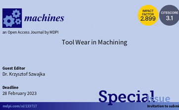 Serdecznie zapraszamy do publikacji artykułów naukowych w czasopiśmie Machines (Open Access Journal, Impact Factor: 2,899), w numerze specjalnym zatytułowanym Tool Wear in Machining.