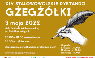 Już 3 maja 2022r. na Auli Politechniki Rzeszowskiej w Stalowej woli odbędzie się XIV Stalowowolskie Dyktando „Gżegżółki”. Konkurs ma charakter otwarty.