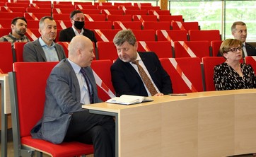 02.06.2021 Rektor PRz prof. dr hab. inż. Piotr Koszelnik wraz z Prorektorami i Kanclerzem spotkali się z pracownikami WMT PRz w Stalowej Woli, aby omówić aktualną sytuację uczelni.