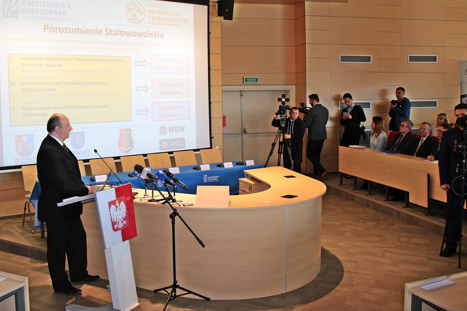 Po wystąpieniach osób zaproszonych, sygnatariuszy porozumienia nastąpiła długo wyczekiwana chwila uroczystego złożenia podpisów. Porozumienie podpisali rektor Politechniki Rzeszowskiej prof. Tadeusz Markowski, prezydent Stalowej Woli Lucjusz Nadbereżny, wicemarszałek województwa podkarpackiego Ewa Draus, starosta stalowowolski Janusz Zarzeczny i wicestarosta Mariusz Sołtys, prezes zarządu Huty Stalowa Wola Bartłomiej Zając i członek zarządu HSW Jan Szwedo.