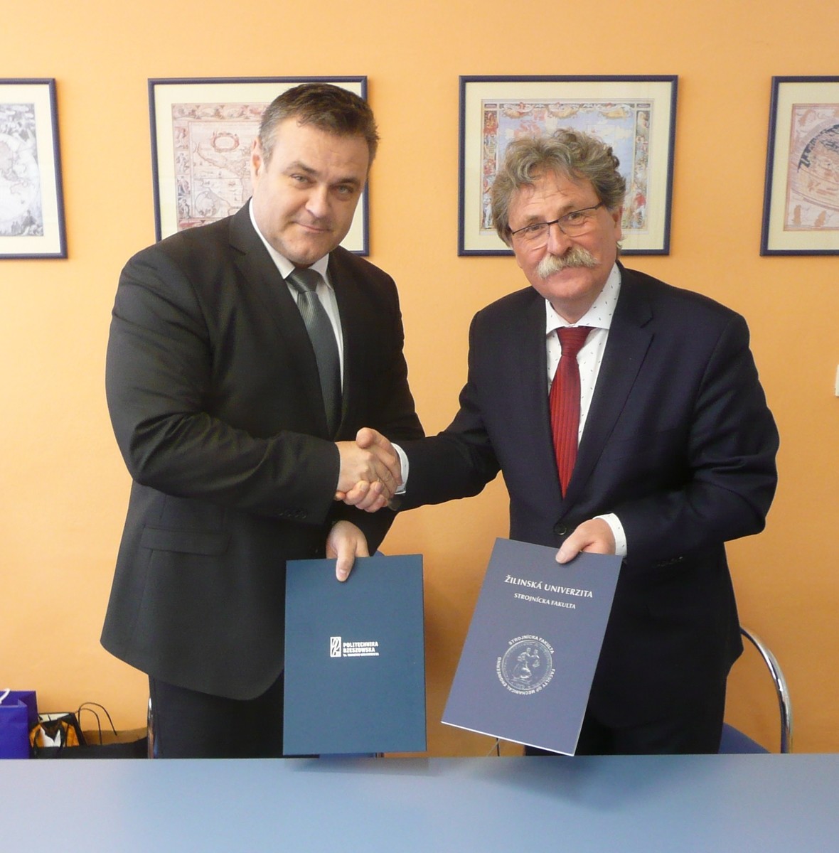 Umowę podpisali dziekani prof. Dr. Ing. Milan Sága i dr hab. inż. Aleksander Mazurkow prof. PRz, w siedzibie Strojnickiej Fakulty Žilinskiej Univerzity w Žiline. Możliwości dydaktyczno-naukowe i laboratoria wydziałowe zaprezentowała prof. Ing. Dana Bolibruchová PhD. Kierownik Katedry Inżynierii Technologicznej.