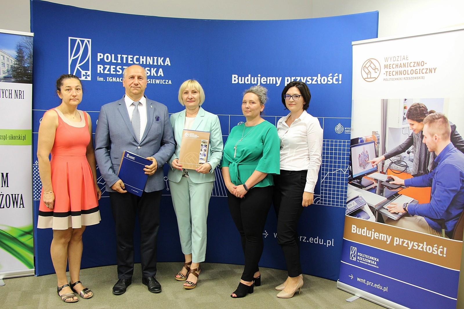 W imieniu szkoły uroczystego podpisania dokonała Pani Dyrektor mgr Agata Krzek, a z upoważnienia JM Rektora prof. dr. hab. inż. Piotra Koszelnika Politechnikę Rzeszowską reprezentował dr hab. inż. Andrzej Trytek, prof. PRz – Dziekan Wydziału Mechaniczno-Technologicznego. Szkołę reprezentowały również mgr inż. Lucyna Król – Kierownik szkolenia praktycznego oraz nauczyciel przedmiotów zawodowych mgr inż. Edyta Poręba.