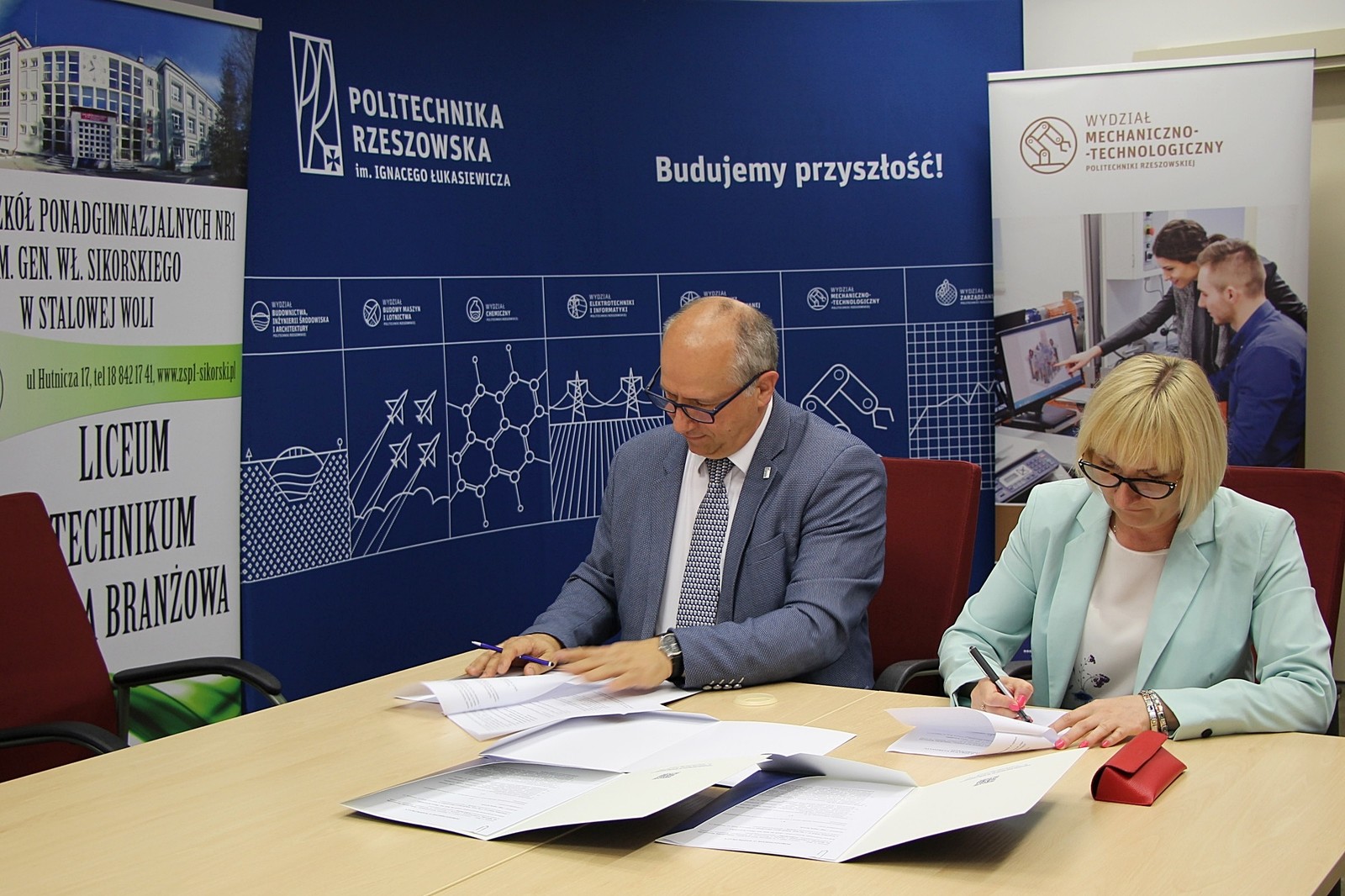 Dnia 23 czerwca 2022 r. w siedzibie Wydziału Mechaniczno-Technologicznego podpisane zostało porozumienie o współpracy pomiędzy Politechniką Rzeszowską im. Ignacego Łukasiewicza a Zespołem Szkół nr 1 im. gen. Władysława Sikorskiego w Stalowej Woli. Instytucje podpisały również porozumienie w sprawie patronatu honorowego.