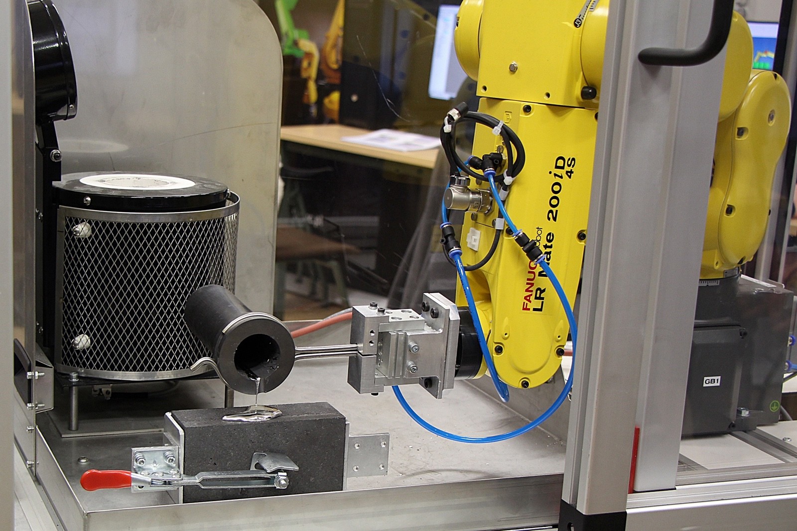 Stanowisko znajdujące się w Laboratorium Robotyki doposażono w unikatowy moduł do odlewania, który zaprojektowano na WMT. Dodatkowe dwa moduły technologiczne umożliwiają symulację przemieszczania palnika spawalniczego oraz obróbkę ścierną. Robot został zintegrowany z oprogramowaniem symulacyjnym FANUC ROBOGUIDE, co pozwala na projektowanie, planowanie aplikacji, wirtualne testowanie, zbieranie danych oraz optymalizację procesów produkcyjnych.