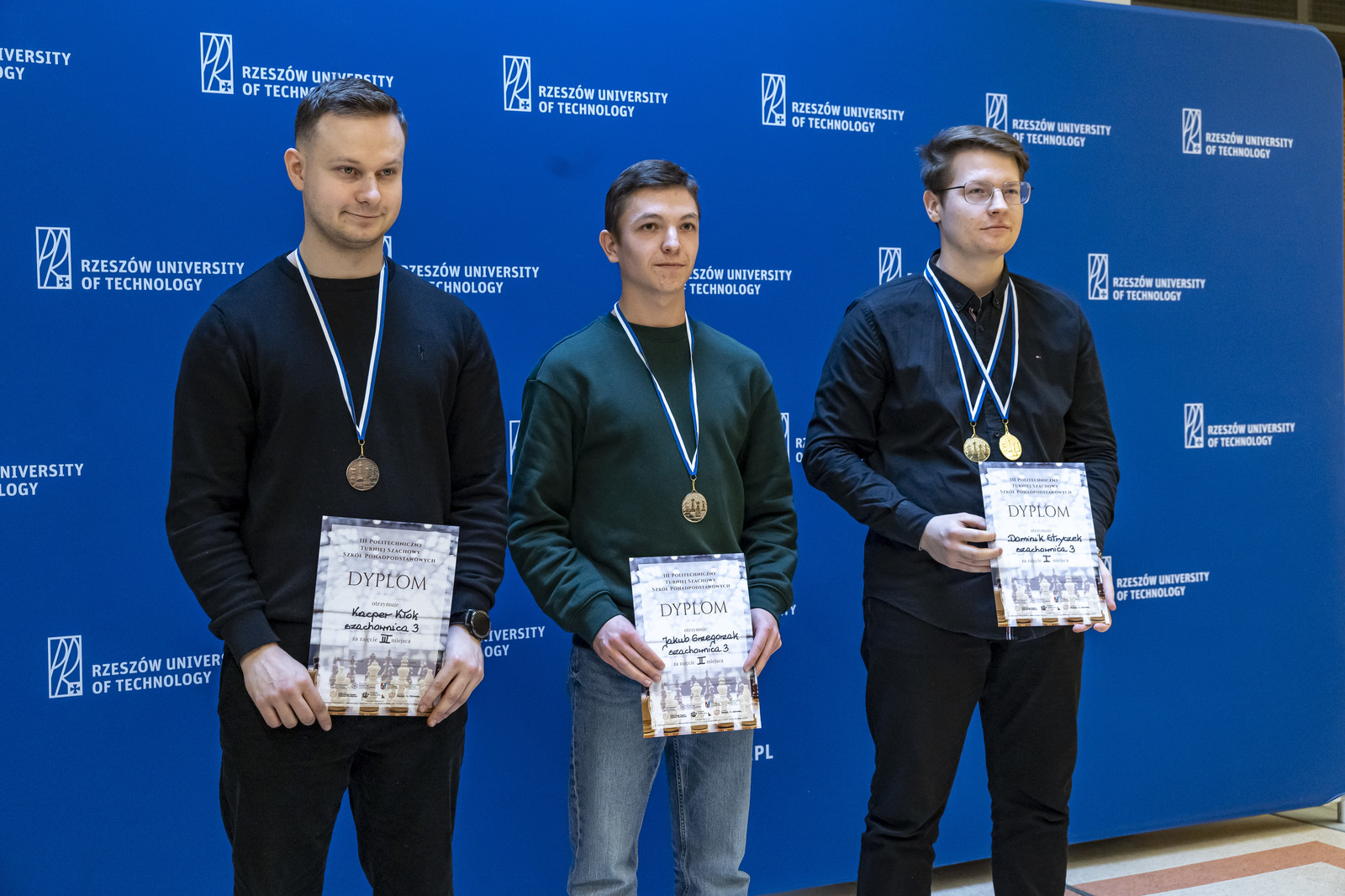 W czwartek 13 lutego 2025 roku odbył się w aulach Politechniki Rzeszowskiej III Turniej Szachowy. Wydział Mechaniczno-Technologiczny reprezentowała czteroosobowa drużyna, w której skład weszli: Kamil Surma, Kacper Kłok, Tomasz Galek i Andrzej Chmielowiec. Już w pierwszej rundzie rozgrywki przyjęły formę ostrej i zaciętej rywalizacji. Nasza drużyna dzielnie stawiała czoła przeciwnikom, choć poziom zawodników był naprawdę bardzo wysoki. Przemyślana strategia, nieustępliwość i walka do ostatnich sekund każdej partii pozwoliły zająć drużynie WMT wysokie 5-te miejsce. W strefie medalowej znalazł się Kacper Kłok, który wywalczył 3 miejsce na trzeciej szachownicy w klasyfikacji indywidualnej.