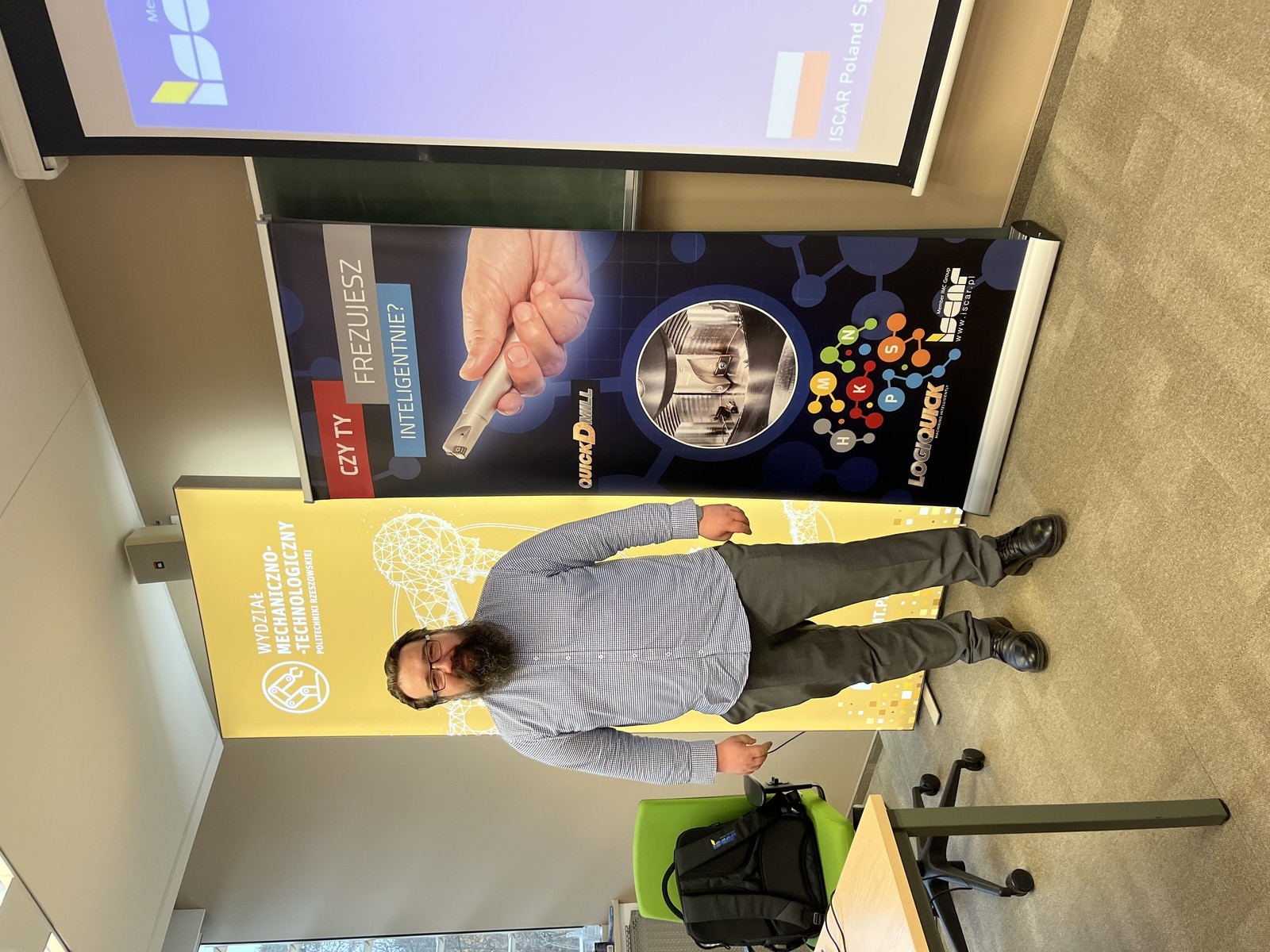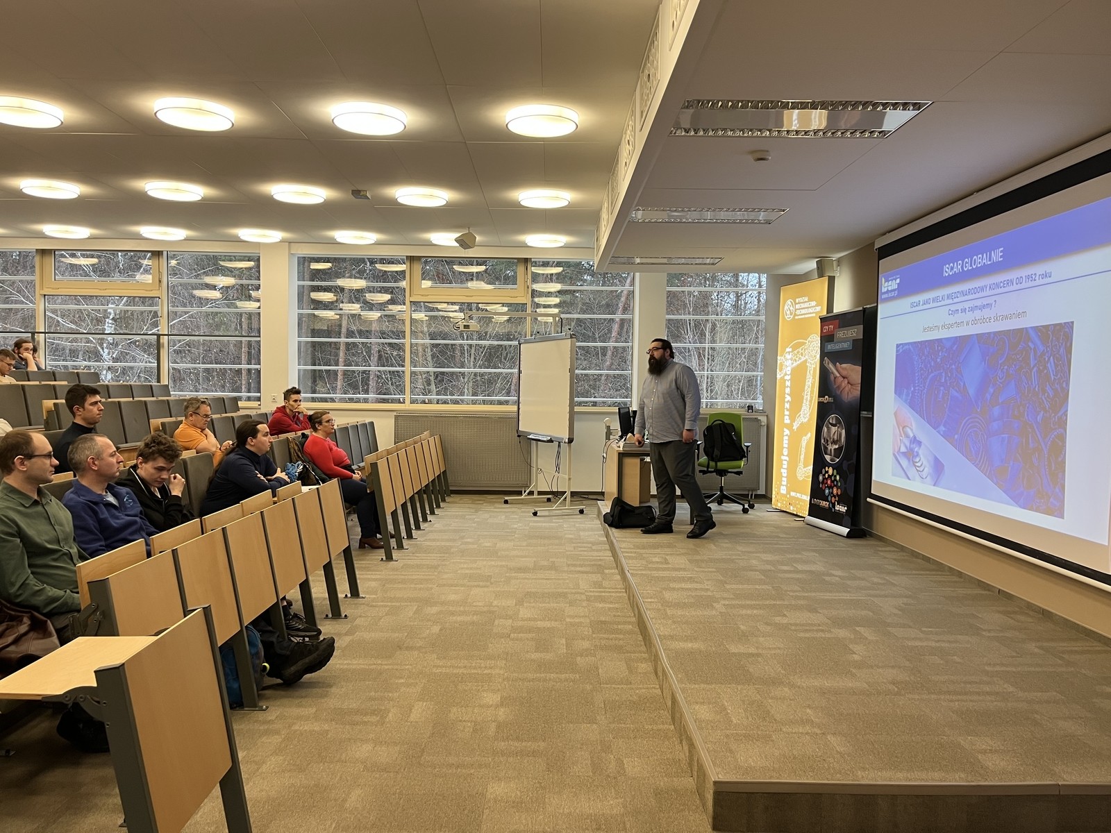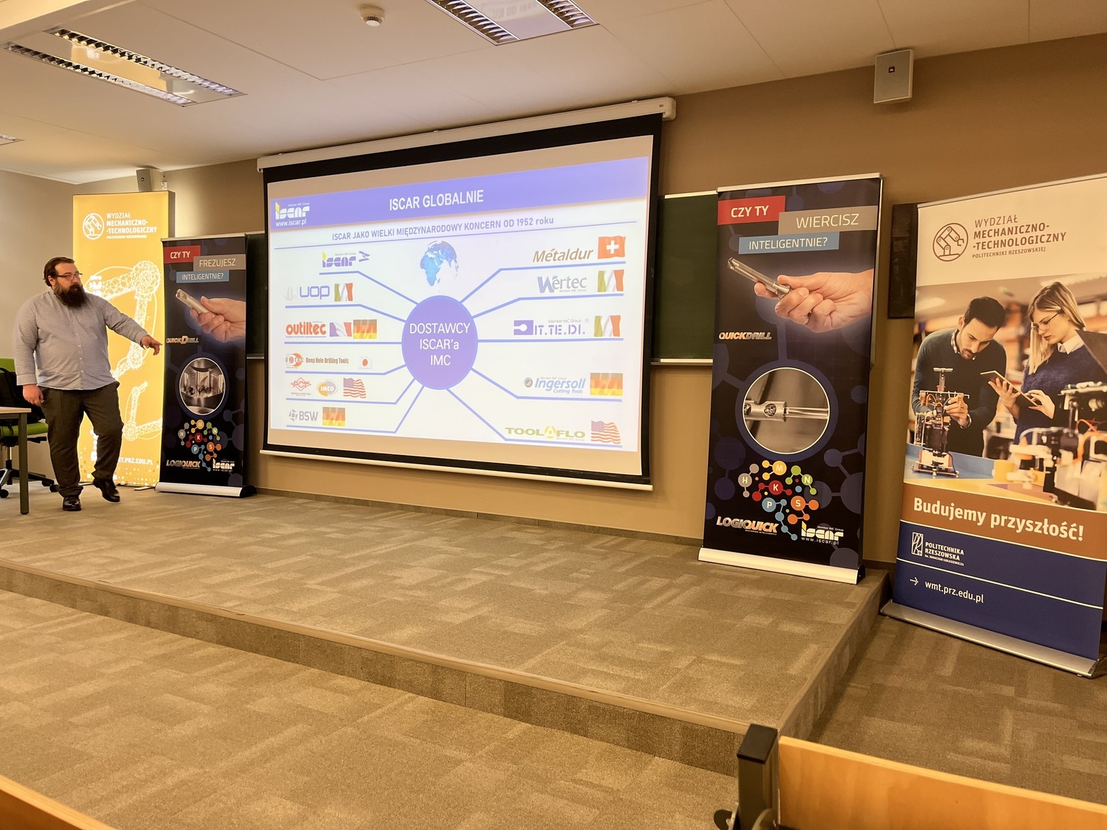 Prowadzącym był Pan Marcin Różański, Dyrektor Techniczny ISCAR Poland. W spotkaniu uczestniczyli Pracownicy oraz Studenci kierunków: Inteligentne systemy i technologie produkcji oraz Zarządzanie i inżynieria produkcji.
