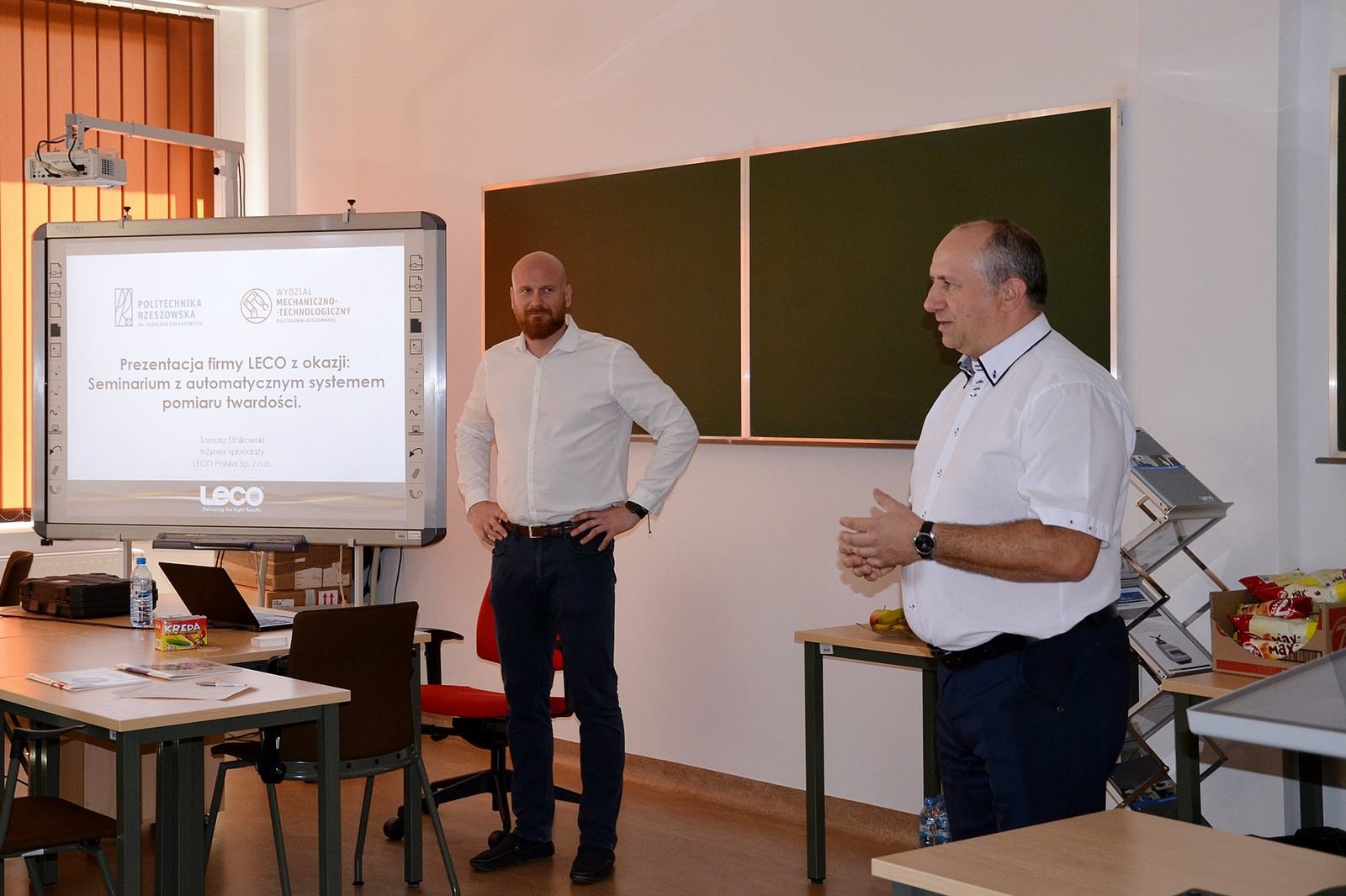 21 czerwca 2017 roku na Wydziale Mechaniczno – Technologicznym w Stalowej Woli odbyło się seminarium warsztatowo - szkoleniowe. Tematem przewodnim był automatyczny system pomiaru twardości. Przedstawiciel firmy LECO Pan mgr inż. Tomasz Stójkowski zaprezentował aparaturę naukowo-badawczą do analizy zawartości gazów w materiałach oraz spektrometry do analizy składu chemicznego. W części warsztatowej seminarium odbył się pokaz najnowszego modelu twardościomierza do automatycznego pomiaru twardości metodą Vikersa. Uczestnicy seminarium mieli możliwość wypróbowania twardościomierza na próbkach własnych. Wśród uczestników seminarium znaleźli się przedstawiciele firm: Eurometal S.A., Uniwheels Production Poland Sp. z o.o., Inkubatora Technologicznego w Stalowej Woli oraz Wydziału Mechaniczno-Technologicznego PRz. Dziękujemy prelegentowi oraz uczestnikom za spotkanie. Zapraszamy na kolejne seminaria.