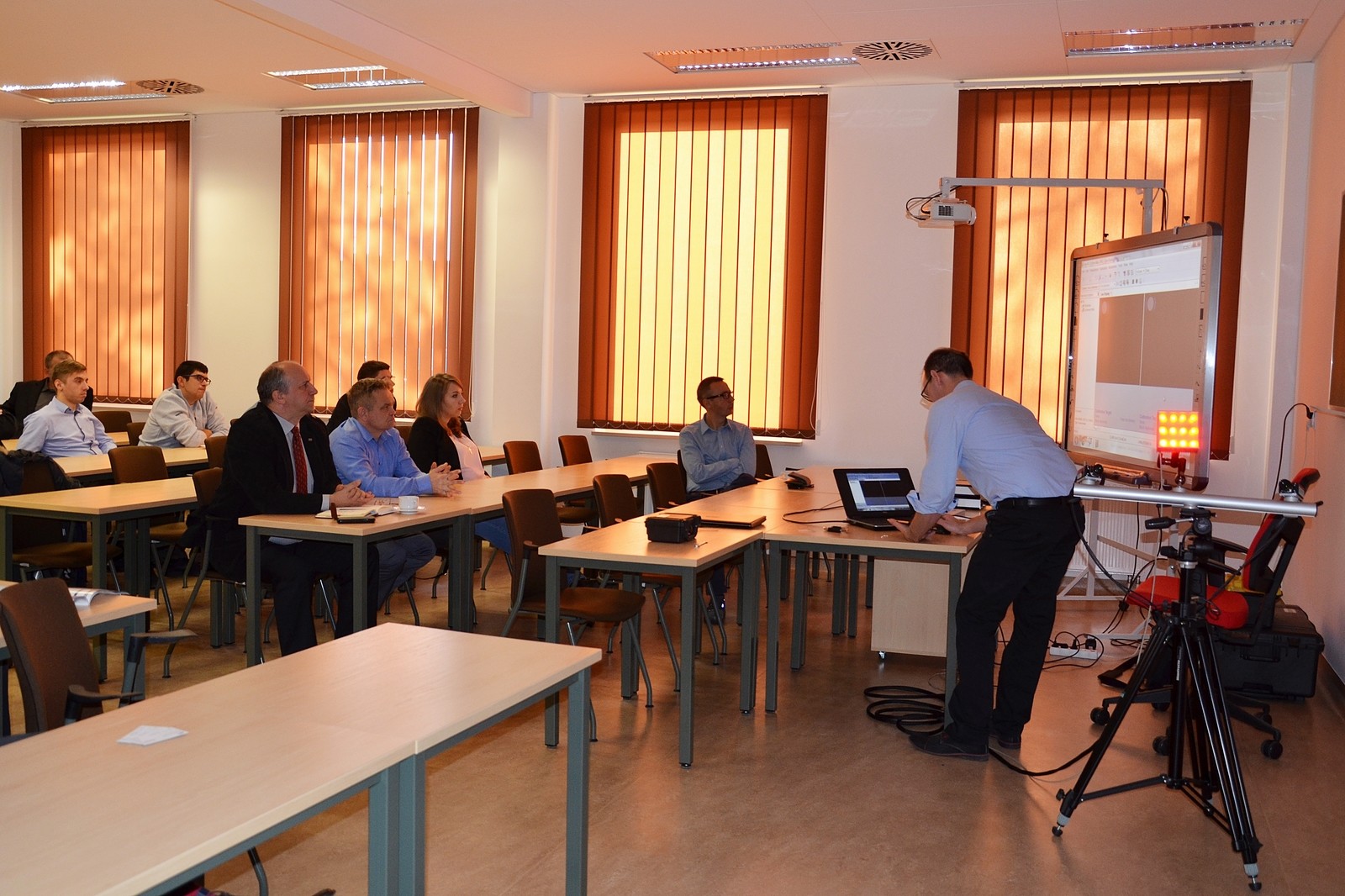 Firma ITA jest polskim przedsiębiorstwem, które od ponad 18 lat dostarcza kompleksowe rozwiązania z dziedziny metrologii przemysłowej oraz systemów narzędziowych. Wprowadzeniem do seminarium było przybliżenie uczestnikom spektrum działalności prowadzonej przez firmę oraz krótkie wprowadzenie teoretyczne do tematyki poruszanego na spotkaniu - przez pana Damiana Śmierzchalskiego - Product Manager ITA. Punktem kulminacyjnym seminarium była rzeczywista i kompleksowa prezentacja wspomnianego systemu, jego możliwości i implementacji w środowisku zarówno laboratoryjnym jak i przemysłowym. Wystąpienie prelegenta ITA oraz prezentacją systemu wzbudziło szeroką i ożywioną dyskusję wśród uczestników spotkania, którzy mieli szereg pytań związanych z zastosowaniem i przydatnością systemu w swoim macierzystym przedsiębiorstwie. W seminarium uczestniczyli przedstawiciele lokalnych i okolicznych przedsiębiorstw między innymi: HSW S.A, KOELNER Łańcucka Fabryka Śrub, FME FOOD MACHINERY Europe Sp.zo.o., UNIWHELS Sp. z o.o. i inni. Prodziekan d/s nauki WMT dr hab. inż. Andrzej Trytek, prof. PRz po zakończeniu dyskusji zamknął obrady seminarium, jednocześnie składając podziękowania wszystkim uczestnikom seminarium za aktywny udział, a przede wszystkim przedstawicielom firmy ITA za możliwość prezentacji systemu. Ponadto, wskazał na konieczność organizowania cyklicznych spotkań o zbliżonej tematyce, dostosowanej do potrzeb lokalnych zakładów pracy, które pozwolą na przybliżenie tematyki rozwoju nowoczesnych technologii.
