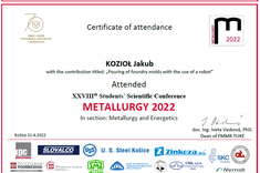 - Jakub KOZIOŁ: Pouring of foundry molds with the use of a robot; w grupie: metallurgy and energetics.