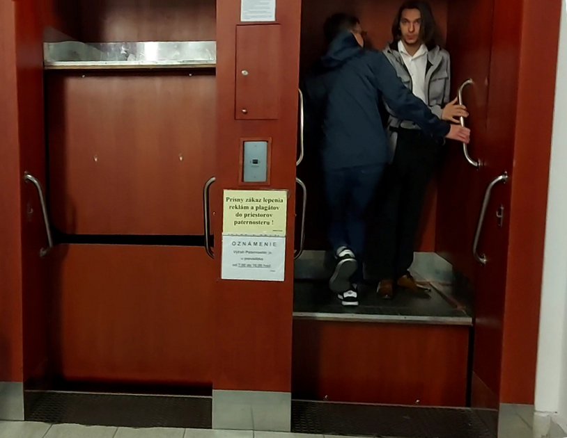 Atrakcją architektoniczną budynku głównego Technickeho Universitetu v Kosicach jest winda. Jest to winda o specjalnym mechanizmie transportu osób tzw. dźwig okrężny, który pracuje jak przenośnik kubełkowy. Widna pracuje z prędkością około 0,4 m/s, dzięki czemu możliwe jest wsiadanie i wysiadanie bez zatrzymywania. Popularna nazwa tego dźwigu to „paternoster”.
