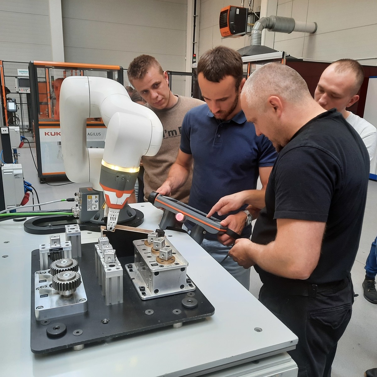 Studenci mieli okazję dowiedzieć się, zarówno od strony teoretycznej, jak i praktycznej, jak wyglądają portfolio robotów i rozwiązania KUKA.WorkVisual, a także jak działa inteligentne oprogramowanie KUKA.Sim.