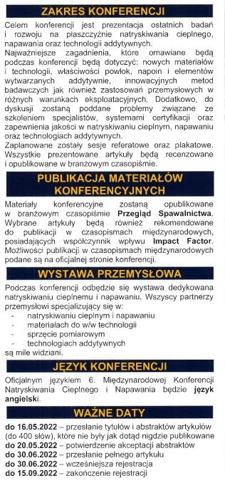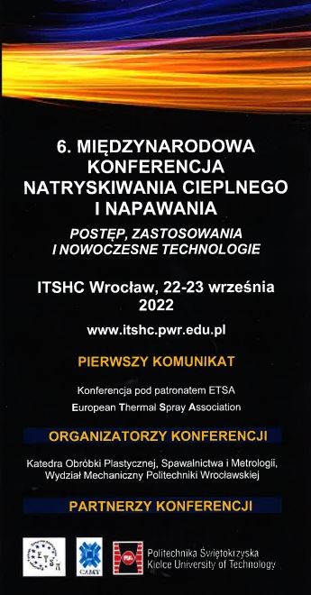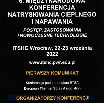 Katedra Obróbki Plastycznej, Spawalnictwa i Metrologii Politechniki Wrocławskiej organizuje 6. Międzynarodową Konferencję Natryskiwania Cieplnego i Napawanie (ITSHC) pod hasłem: Postęp, zastosowania i nowoczesne technologie. Jest to jedyna monotematyczna i cykliczna konferencja poświęcona technologiom natryskiwania cieplnego i napawania w Polsce oraz największą tego typu konferencja w Europie Środkowo- Wschodniej. Od poprzedniej edycji