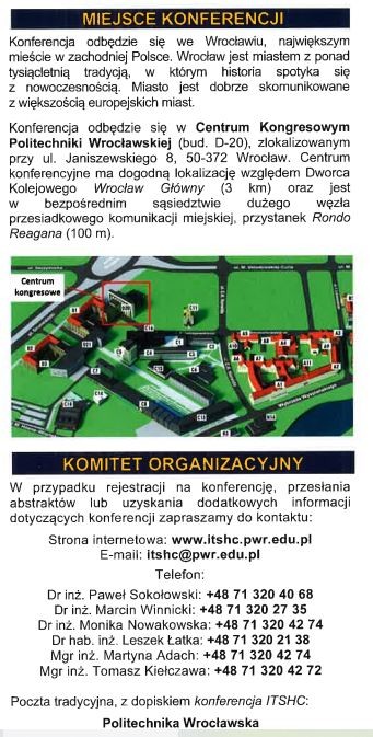 w Centrum Kongresowym Politechniki Wrocławskiej. Szczegółowe informacje oraz szczegółowe dane kontaktowe znajdują się na stronie internetowej: www.itshc.pwr.edu.pl/.