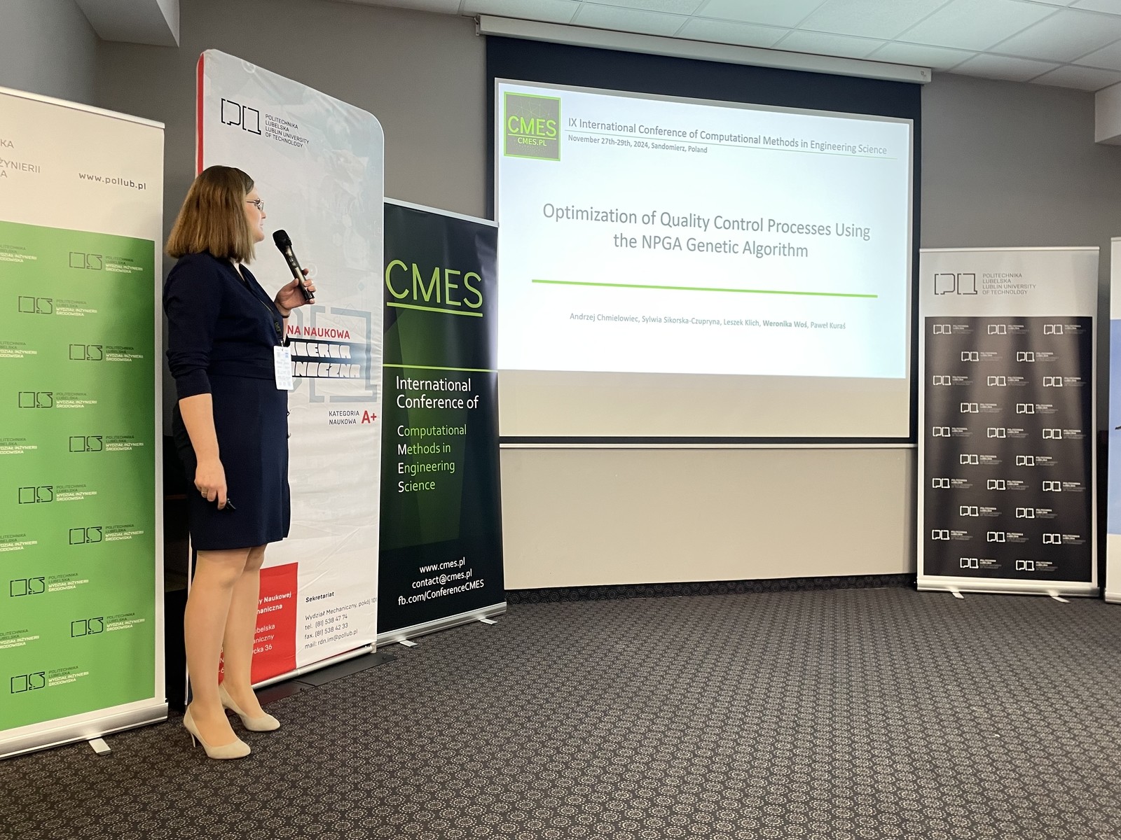 W dniach 27-29 listopada br. w hotelu Mały Rzym w Sandomierzu miała miejsce 9 Międzynarodowa Konferencja Metod Obliczeniowych w Naukach Inżynieryjnych (IX International Conference of Computational Methods in Engineering Science - CMES’24). W konferencji tej brały udział dr Weronika Woś oraz mgr inż. Sylwia Sikorska-Czupryna pracownice Zakładu Informatyzacji i Robotyzacji Procesów Przemysłowych naszego wydziału. Panie wystąpily na sesji „Production Engineering, Management and Quality Control”. Temat wystąpienia dr Weroniki Woś to „Optimization of Quality Control Processes Using the NPGA Genetic Algorithm”. Natomiast mgr inż. Sylwia Sikorska-Czupryna prezentowała temat „Application of Neural Networks for Defect Detection in Rotationally Symmetric Components”.