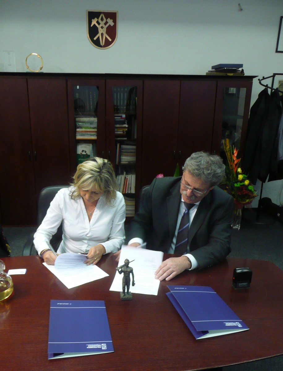 Rys. 1. Pani Dziekan Wydziału Materiałów, Metalurgii i Recyklingu doc. Ing. Iveta Vaskova, PhD. i Dziekan Wydziału Mechaniczno-Technologicznego Politechniki Rzeszowskiej w Stalowej Woli dr hab. inż. Aleksander Mazurkow prof. PRz podpisują umowę o współpracy