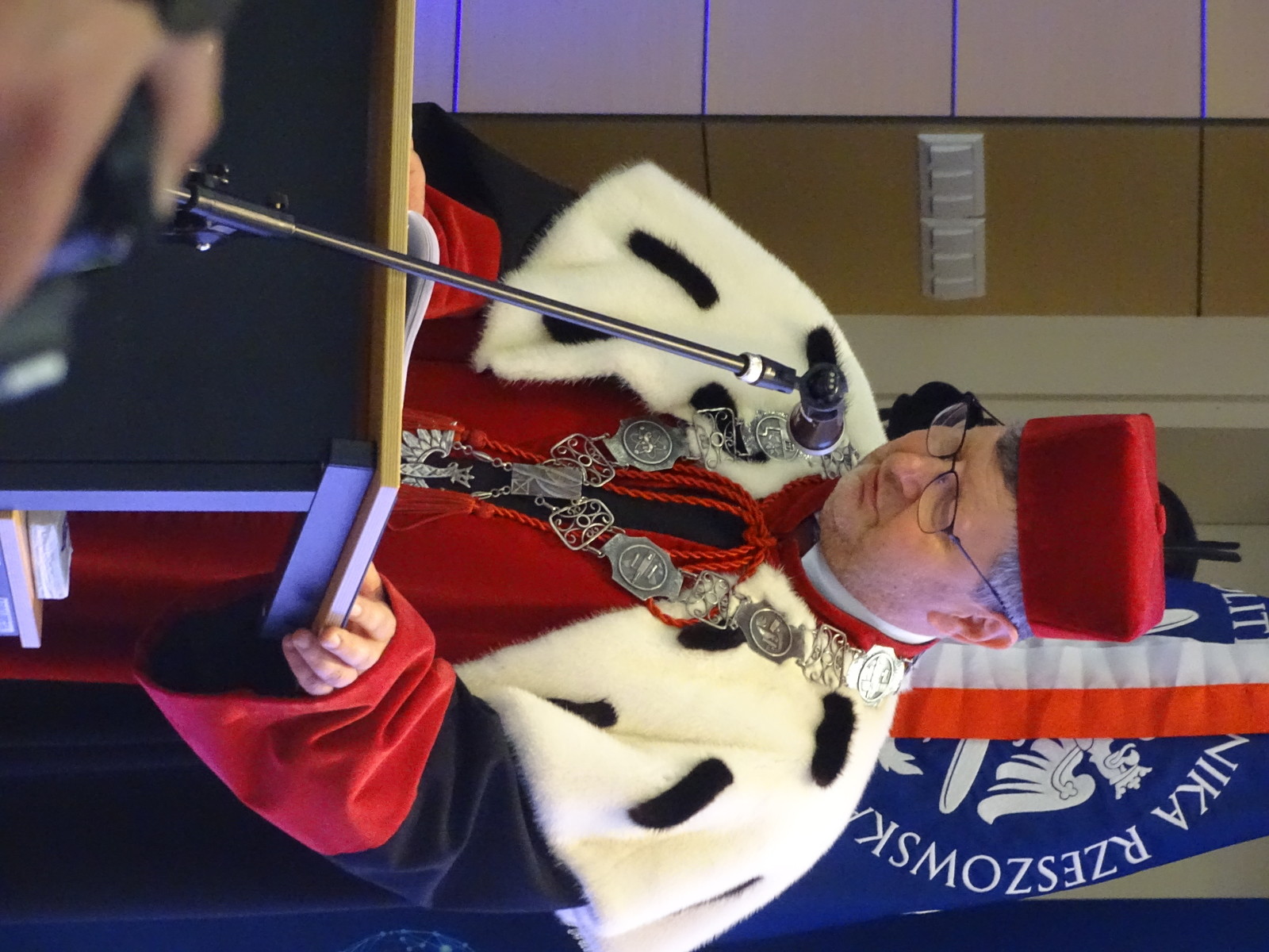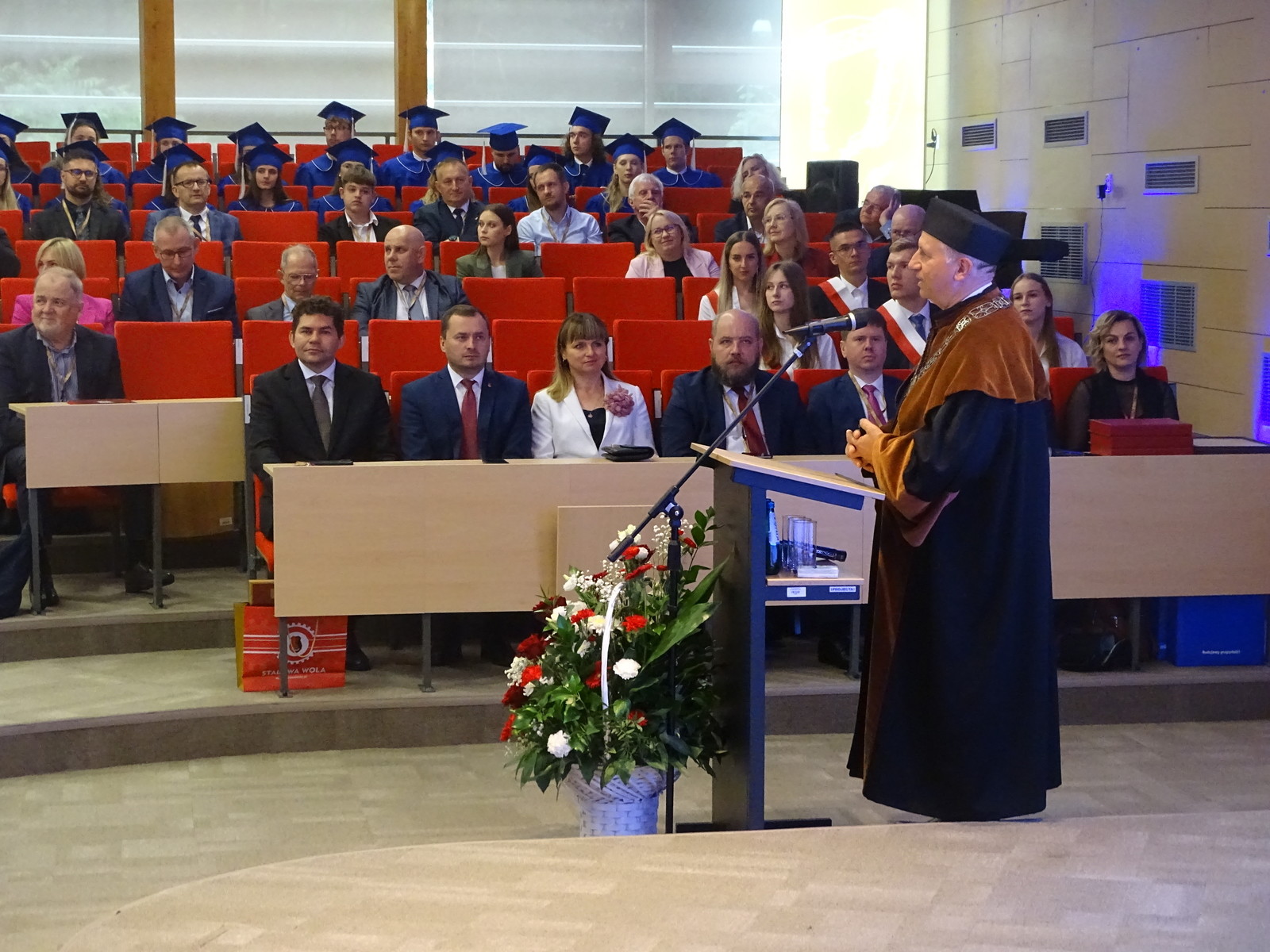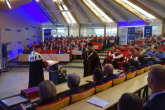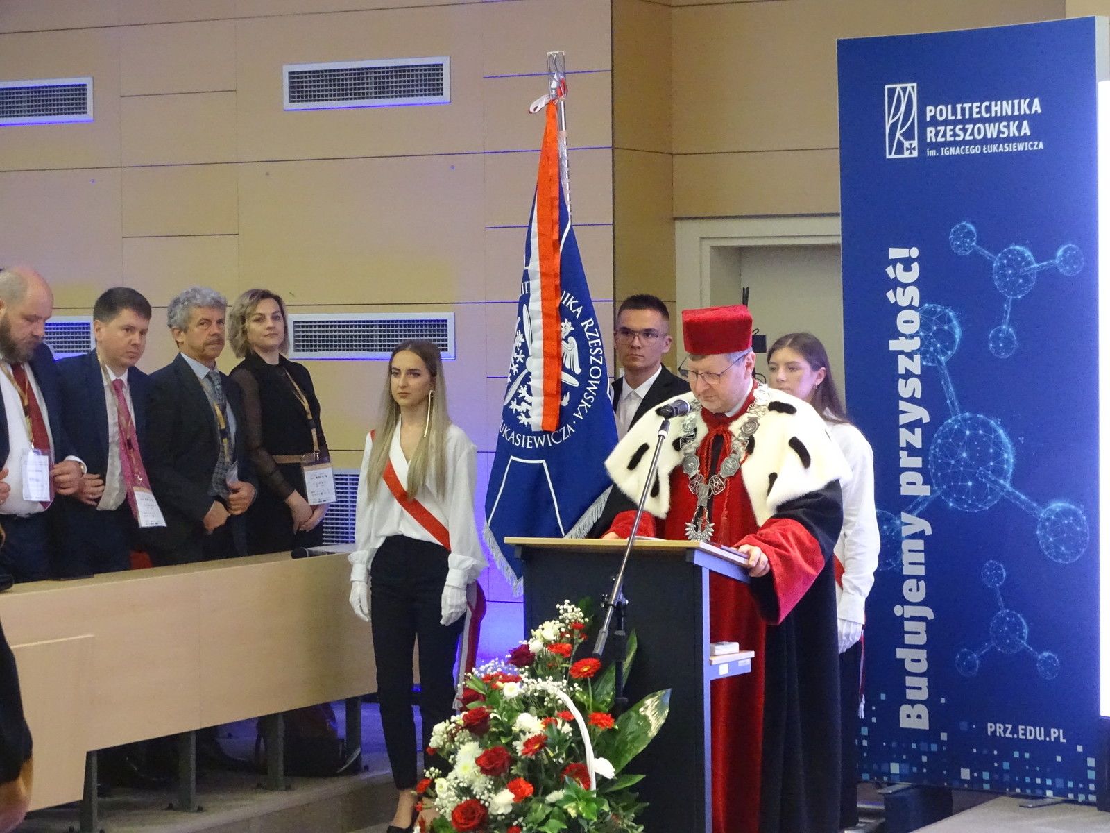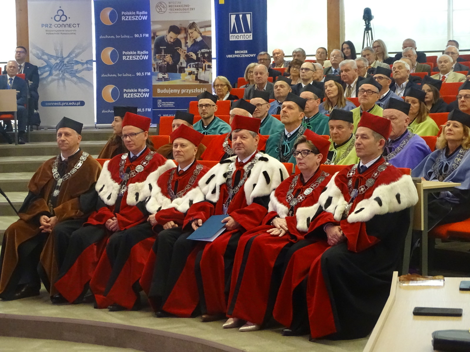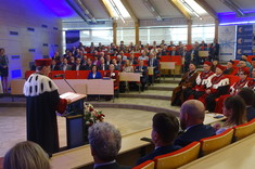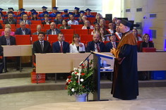 Dziś, w auli Wydziału Mechaniczno- Technologicznego w Stalowej Woli odbył się uroczysty Senat Politechniki Rzeszowskiej. Wszystkich gości powitał Chór Akademicki. Na sali zgromadziło się wielu znamienitych gości Rektor Politechniki Rzeszowskiej prof. dr hab. inż. Piotr Koszelnik, Dziekan WMT dr hab. inż. Andrzej Trytek prof. PRz, przedstawiciele wydziałów, dziekani i prorektorzy w odświętnych togach. Wśród znamienitych gości pojawili się również Pan Lucjusz Nadbereżny, Prezydent miasta Stalowa Wola wraz z zastępcami Panią Moniką Pachacz- Świderską i Panem Tomaszem Miśko, Panem Januszem Zarzecznym, Starostą Stalowowolskim, Panem Marcinem Piwnikiem, Starostą Sandomierskim. Na Sali znaleźli się też Radni Sejmiku Wojewódzkiego, Radni Miasta Stalowa Wola i Powiatu Stalowowolskiego oraz przedstawiciele jednostek samorządowych i administracyjnych z województwa podkarpackiego. Swoją obecnością zaszczycili również przedstawiciele uczelni współpracujących z Politechniką Rzeszowską, Pan profesor Zbigniew Pater, Rektor Politechniki Lubelskiej, Pan profesor Rafał Dańko, Prorektor Akademii Górniczko- Hutniczej w Krakowie, Pan ppłk. Profesor Zdeněk Pokornŷ, Prorekotr z University of Defence Brno, Pan profesor Marcin Górny, Dziekan Wydziału Odlewnictwa Akadami Górniczo- Hutniczej w Krakowskiej oraz Pan profesor Marcin Adamiak, Dziekan Wydziału Mechaniczno- Technologicznego Politechniki Śląskiej. Na uroczystości pojawili się również przedstawiciele ważnych przedsiębiorstw, tj. Pan płk Michał Ceremuga, Dyrektor Wojskowego Instytutu Techniki Pancernej i Samochodowej, Pan płk Paweł Jędryczka, Zastępca Dowódcy Brygady Artylerii w Nowej Dębie, Pan Wojciech Kędziera, Prezes Zarządu Huty Stalowa Wola S.A., Pani Barbara Cena, dyrektor Finansowy Huty Stalowa Wola S.A. W tej ważnej uroczystości uczestniczył też Pan Marek Osak, Konsul Honorowy Republiki Czeskiej. Najliczniej zebrali się również nauczyciele akademiccy, pracownicy i studenci Wydziału Mechaniczno- Technologicznego.