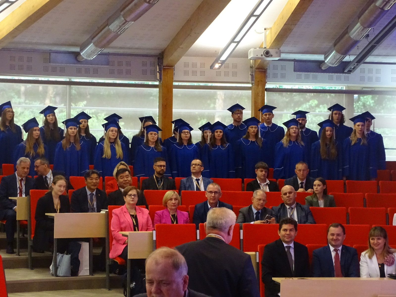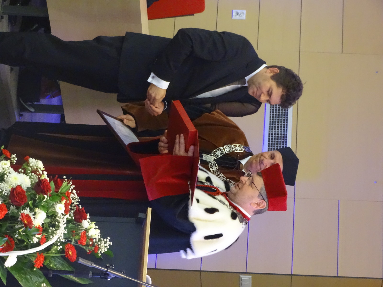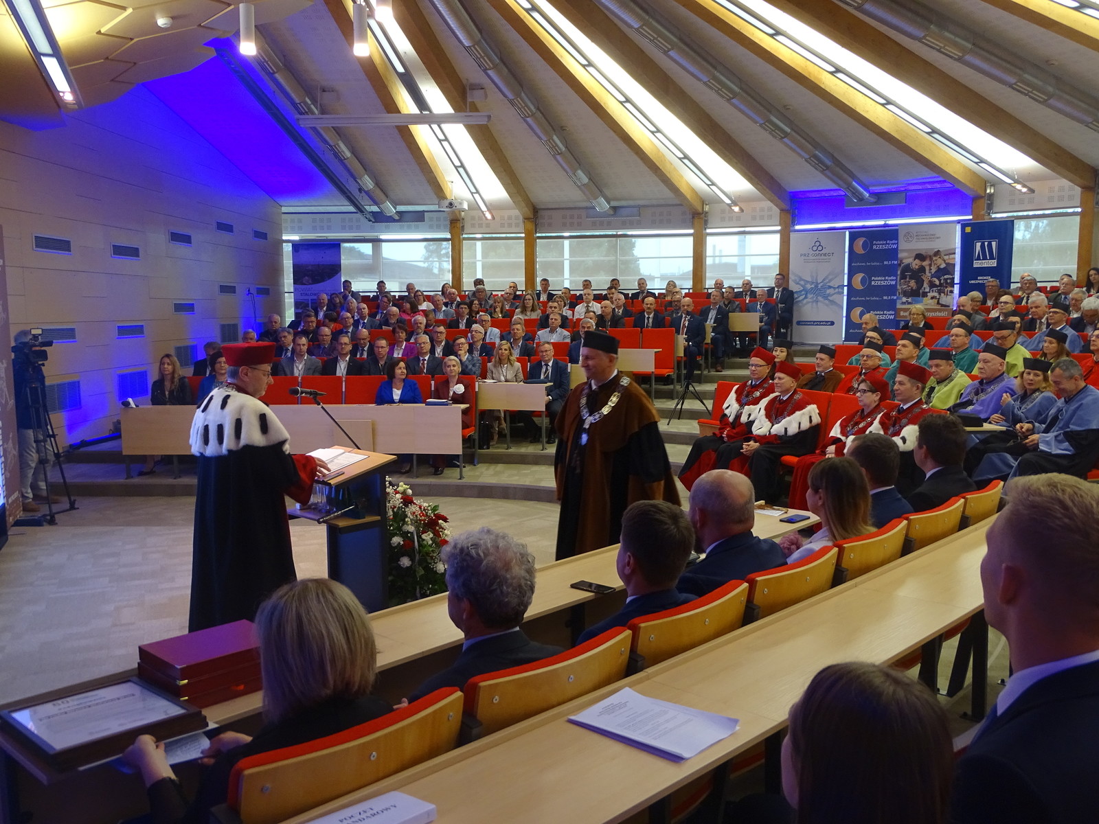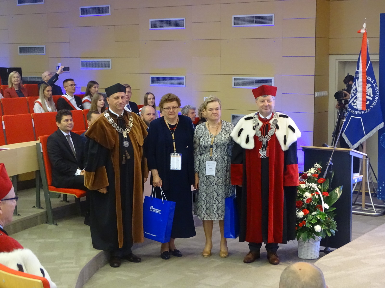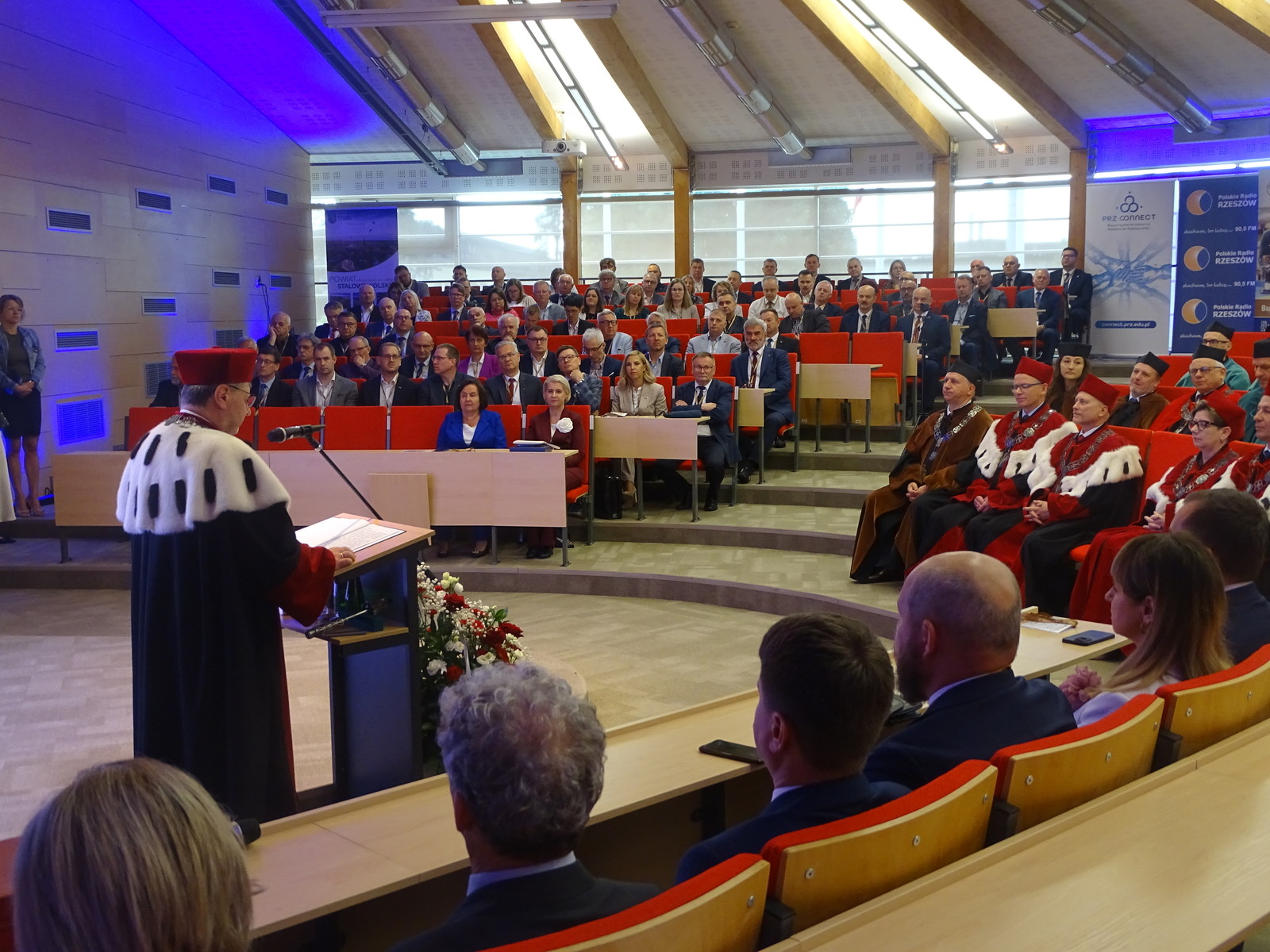 Dziś, w auli Wydziału Mechaniczno- Technologicznego w Stalowej Woli odbył się uroczysty Senat Politechniki Rzeszowskiej. Wszystkich gości powitał Chór Akademicki. Na sali zgromadziło się wielu znamienitych gości Rektor Politechniki Rzeszowskiej prof. dr hab. inż. Piotr Koszelnik, Dziekan WMT dr hab. inż. Andrzej Trytek prof. PRz, przedstawiciele wydziałów, dziekani i prorektorzy w odświętnych togach. Wśród znamienitych gości pojawili się również Pan Lucjusz Nadbereżny, Prezydent miasta Stalowa Wola wraz z zastępcami Panią Moniką Pachacz- Świderską i Panem Tomaszem Miśko, Panem Januszem Zarzecznym, Starostą Stalowowolskim, Panem Marcinem Piwnikiem, Starostą Sandomierskim. Na Sali znaleźli się też Radni Sejmiku Wojewódzkiego, Radni Miasta Stalowa Wola i Powiatu Stalowowolskiego oraz przedstawiciele jednostek samorządowych i administracyjnych z województwa podkarpackiego. Swoją obecnością zaszczycili również przedstawiciele uczelni współpracujących z Politechniką Rzeszowską, Pan profesor Zbigniew Pater, Rektor Politechniki Lubelskiej, Pan profesor Rafał Dańko, Prorektor Akademii Górniczko- Hutniczej w Krakowie, Pan ppłk. Profesor Zdeněk Pokornŷ, Prorekotr z University of Defence Brno, Pan profesor Marcin Górny, Dziekan Wydziału Odlewnictwa Akadami Górniczo- Hutniczej w Krakowskiej oraz Pan profesor Marcin Adamiak, Dziekan Wydziału Mechaniczno- Technologicznego Politechniki Śląskiej. Na uroczystości pojawili się również przedstawiciele ważnych przedsiębiorstw, tj. Pan płk Michał Ceremuga, Dyrektor Wojskowego Instytutu Techniki Pancernej i Samochodowej, Pan płk Paweł Jędryczka, Zastępca Dowódcy Brygady Artylerii w Nowej Dębie, Pan Wojciech Kędziera, Prezes Zarządu Huty Stalowa Wola S.A., Pani Barbara Cena, dyrektor Finansowy Huty Stalowa Wola S.A. W tej ważnej uroczystości uczestniczył też Pan Marek Osak, Konsul Honorowy Republiki Czeskiej. Najliczniej zebrali się również nauczyciele akademiccy, pracownicy i studenci Wydziału Mechaniczno- Technologicznego.