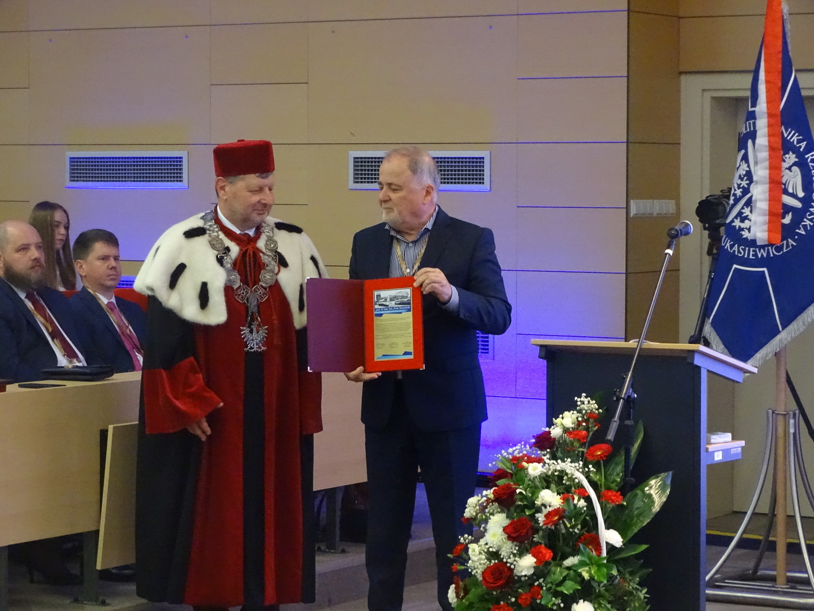 W kolejnej części programu, Rektor Politechniki Rzeszowskiej podziękował i wręczył statuetki Prezydentowi Stalowej Woli Lucjuszowi Nadbereżnemu oraz Staroście stalowowolskiemu Januszowi Zarzecznemu za wsparcie uczelni w organizacji i rozwoju kształcenia politechnicznego. Obaj Panowie zabrali głos i w swoich wystąpieniach podkreślili jak kluczowym dla regionu jest istnienie uczelni technicznej wyrażając szczególnie uznanie Rektorowi i Dziekanowi WMT za ich współprace i bardzo dobre relacje.
