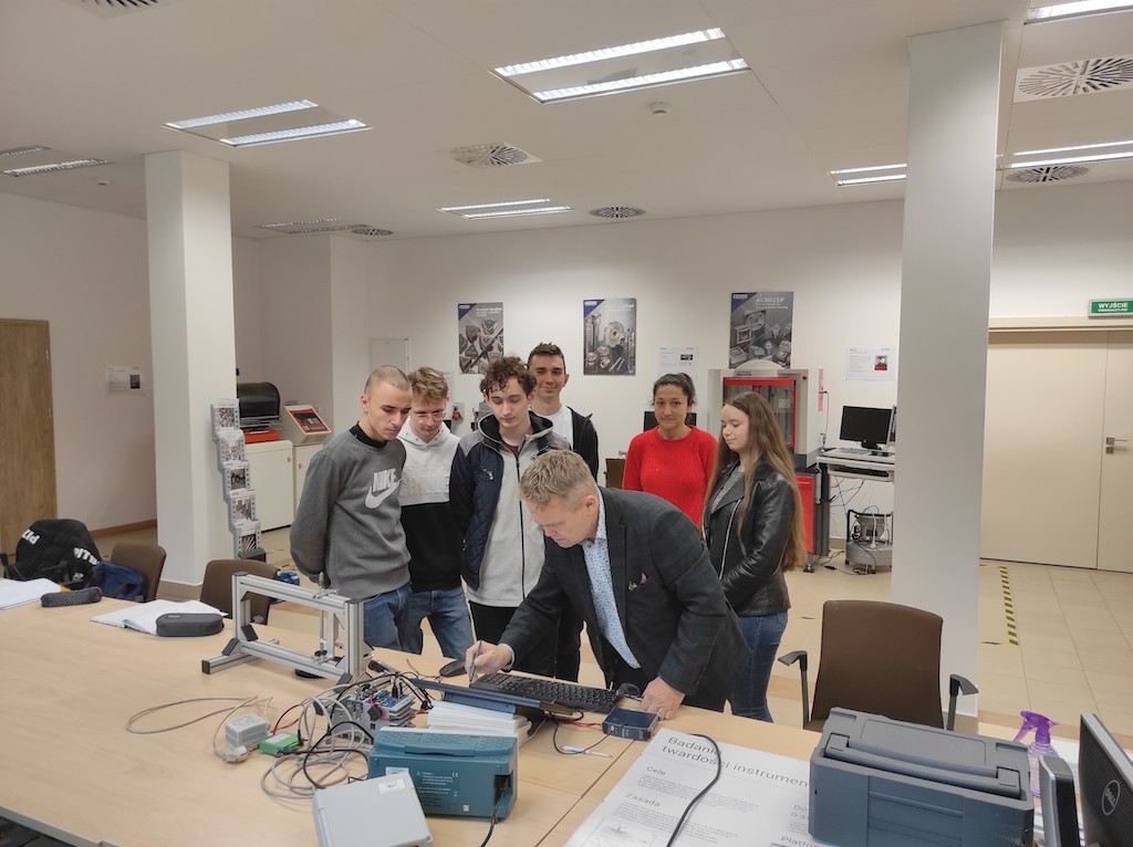 W ramach współpracy, w dniu 04.11. 2021 r. w laboratorium Wydziału Mechaniczno-Technologicznego Politechniki Rzeszowskiej odbyły się „warsztaty” dla uczniów Zespołu Szkół Ponadgimnazjalnych nr 1 im. gen. Władysława Sikorskiego w Stalowej Woli, z zakresu cyfrowych systemów przetwarzania sygnałów przeprowadzony przez dra inż. Krzysztofa Szwajka.