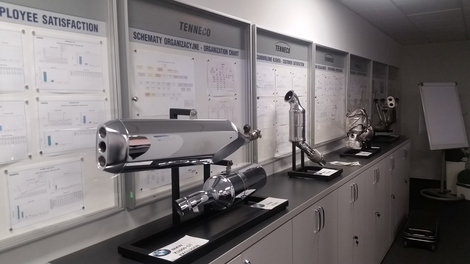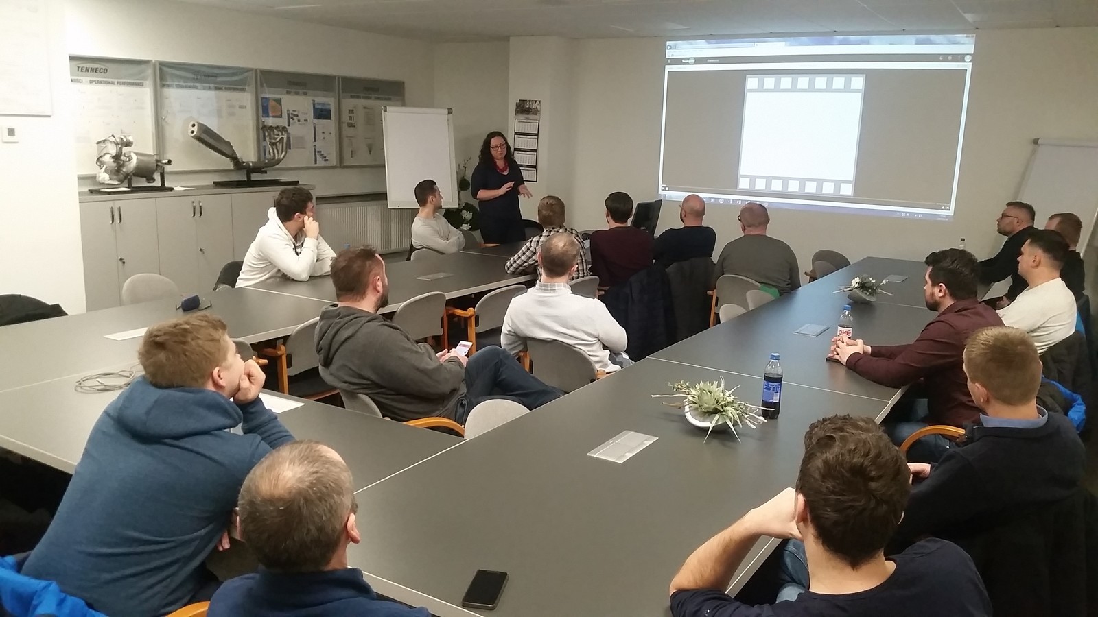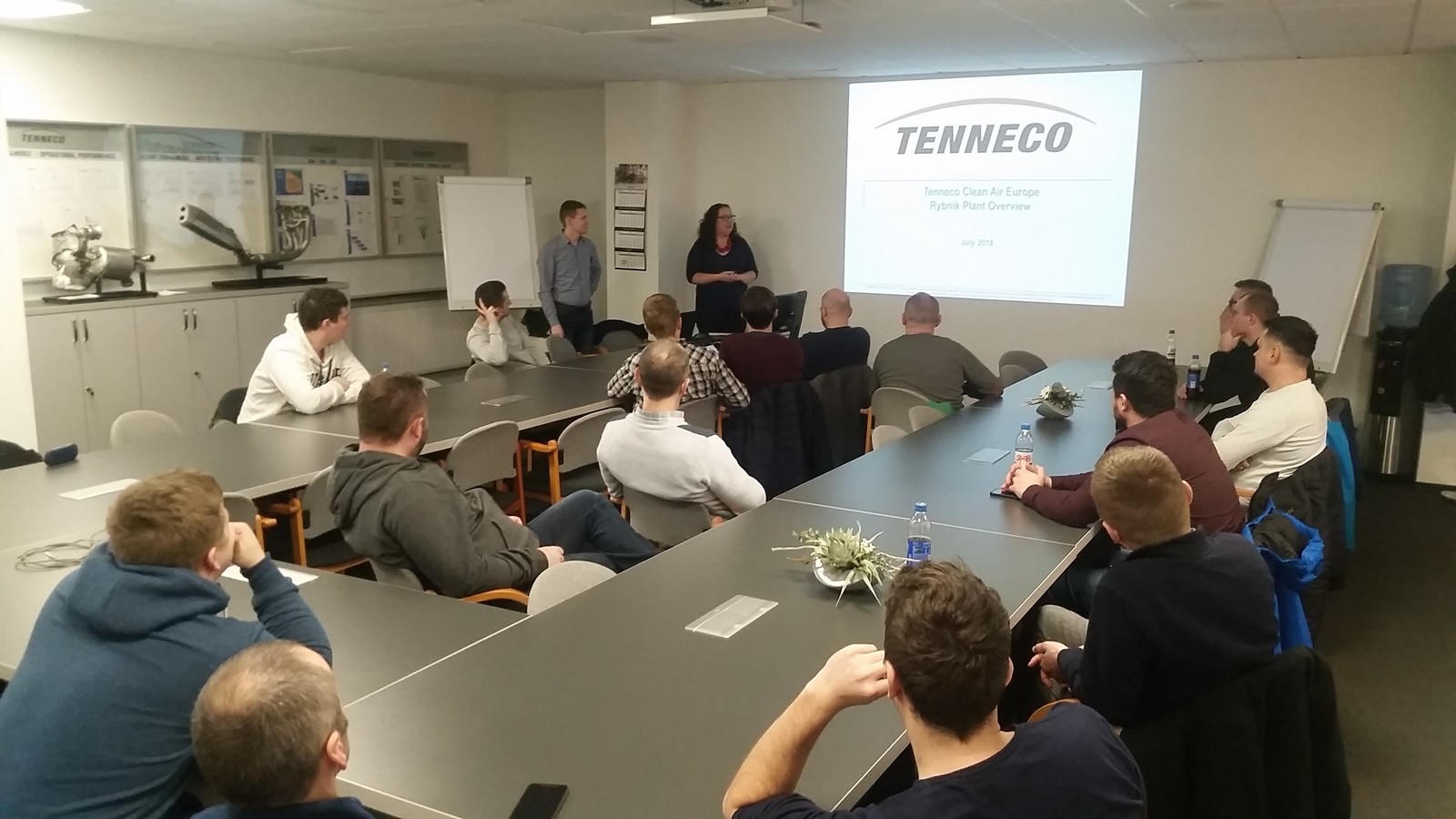 Wizyta w TENNECO AUTOMOTIVE POLSKA Sp. z o.o. składała się z trzech części: prezentacji multimedialnej firmy TENNECO, zwiedzania hali produkcyjnej oraz dyskusji. Dzięki uprzejmości kierownictwa firmy i jej pracowników możliwa była obserwacja produkcji kompletnych zestawów i układów wydechowych W przedsiębiorstwie główne technologie wytwarzania to spawalnictwo oraz przeróbka plastyczna blach i rur. Wymagający odbiorcy produktów firmy Tenneco przyczyniają się do ciągłego doskonalenia procesów produkcji układów wydechowych. Stąd też linie produkcyjne w firmie to zrobotyzowane stanowiska spawalnicze oraz zautomatyzowane linie montażowe. Zastosowana w TENNECO AUTOMOTIVE POLSKA Sp. z o.o. w Rybniku robotyzacja i automatyzacja procesów umożliwia skrócenie czasu wykonania poszczególnych operacji wytwarzania oraz uzyskanie wysokiej jakości produktów.