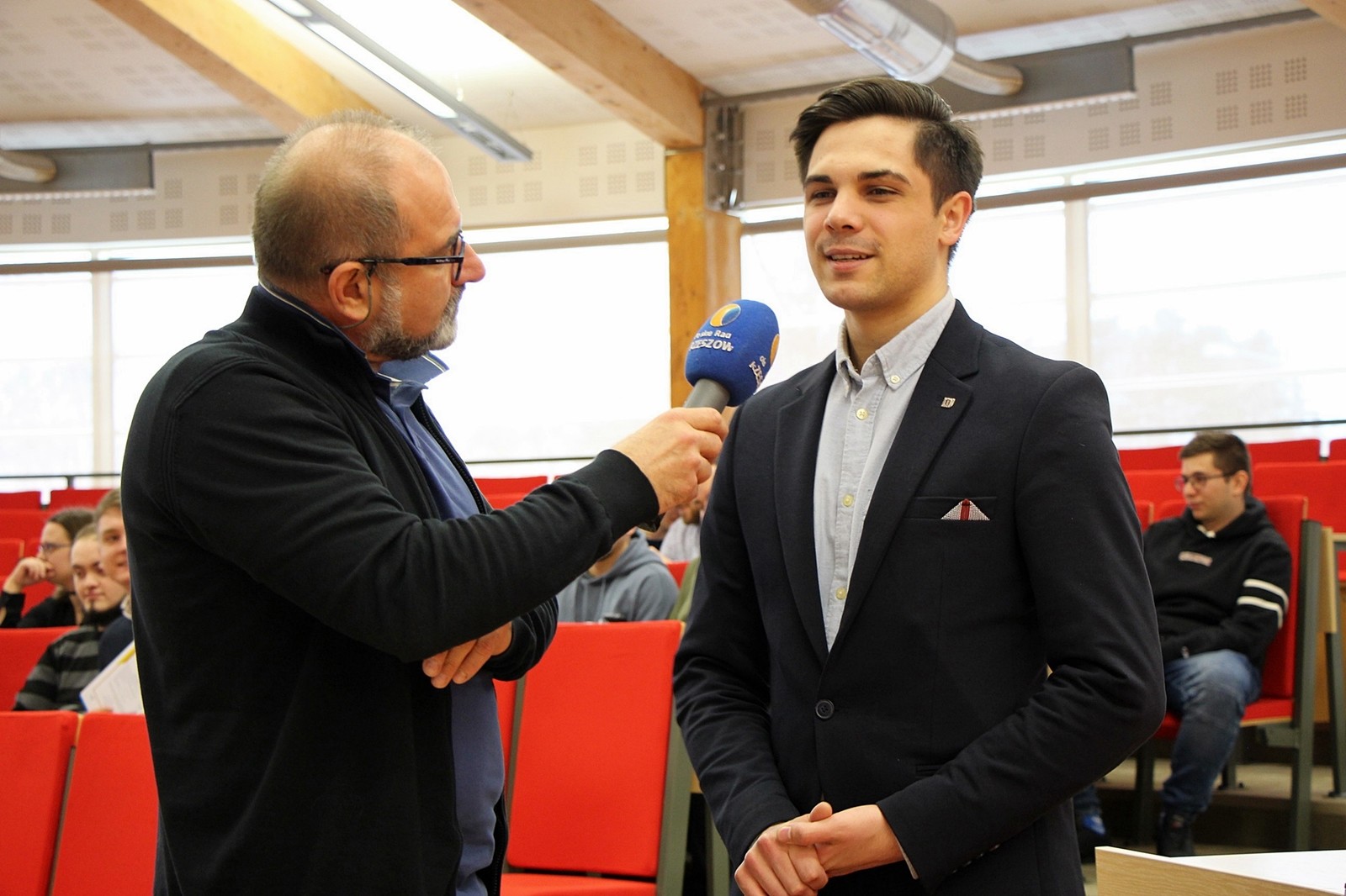 Dyplomy wręczyli: dr Małgorzata Makowska, dziekan Wydziału Mechaniczno-Technologicznego dr hab. inż. Andrzej Trytek, prof. PRz oraz Tomasz Miśko – Dyrektor Agencji Rozwoju Przemysłu S.A. Oddział w Tarnobrzegu.