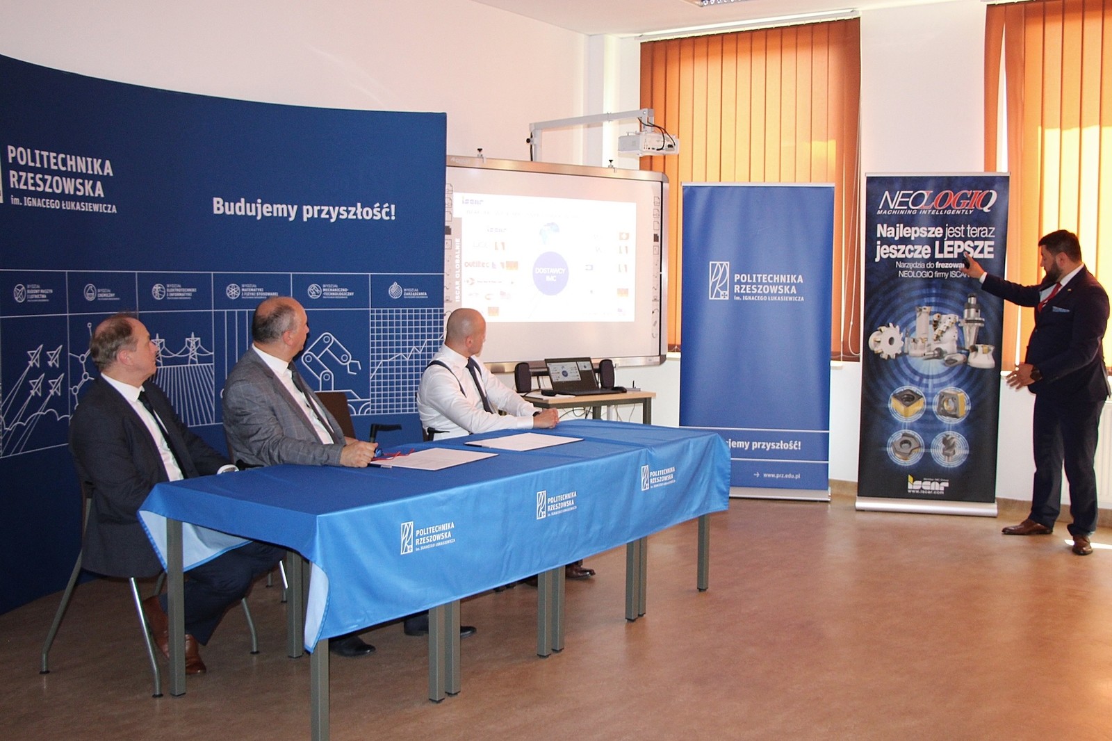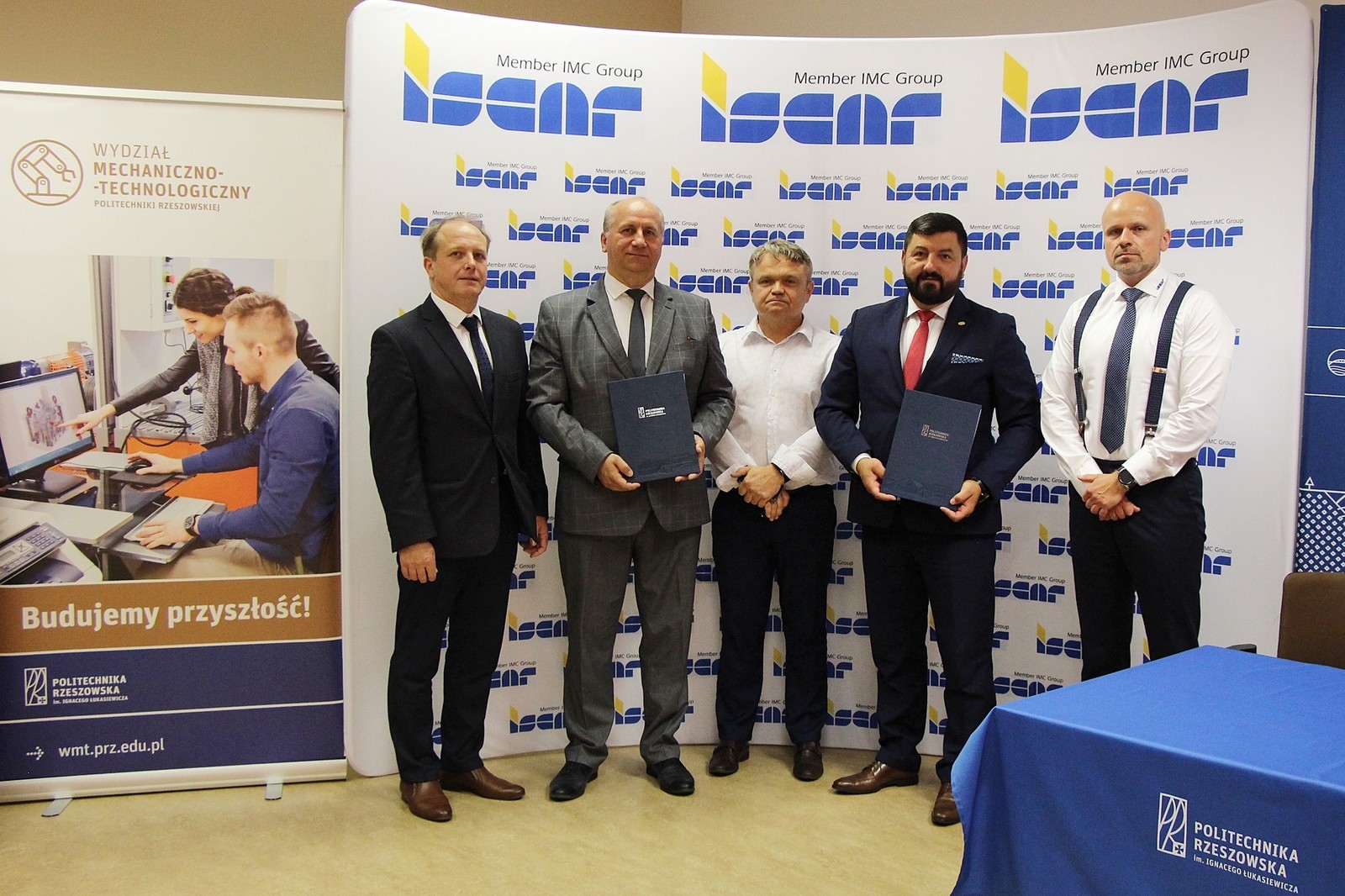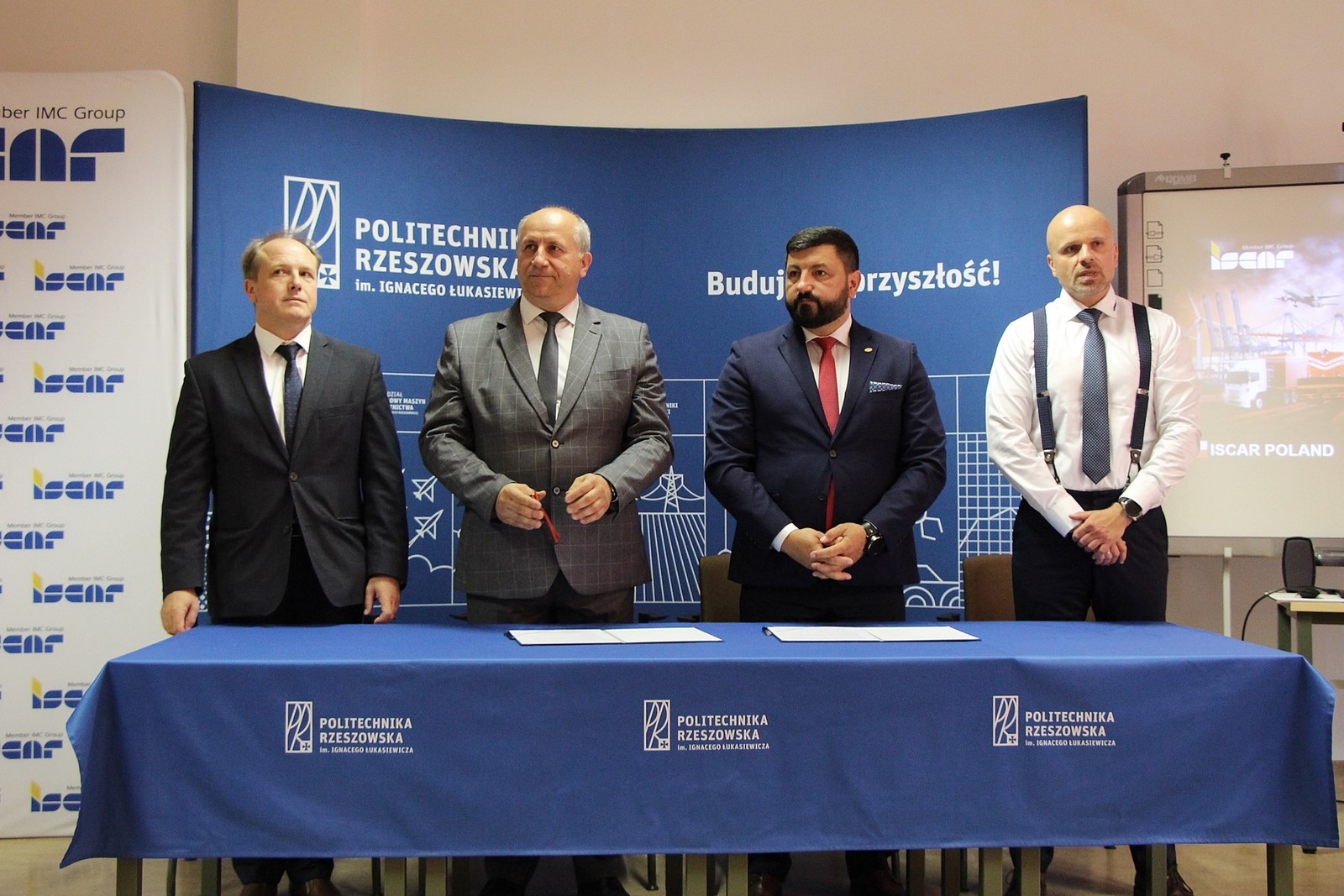 Porozumienie zostało podpisane w obecności starosty stalowowolskiego Janusza Zarzecznego. Uczelnię reprezentowali dr hab. inż. Andrzej Trytek, prof. PRz Dziekan Wydziału Mechaniczno-Technologicznego oraz dr hab. inż. Mirosław Tupaj, prof. PRz Prodziekan ds. rozwoju. Przedstawicielami Iscar Poland byli Robert Zieliński Prezes Zarządu oraz Bogdan Kaczmarek Specjalista ds. Rozwoju Biznesu. W imieniu Uczelni, na mocy pełnomocnictwa udzielonego przez JM Rektora PRz prof. dr hab. inż. Piotra Koszelnika, umowę podpisał dr hab. inż. Andrzej Trytek, prof. PRz.