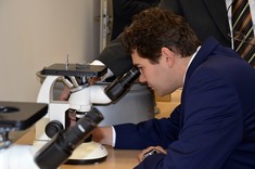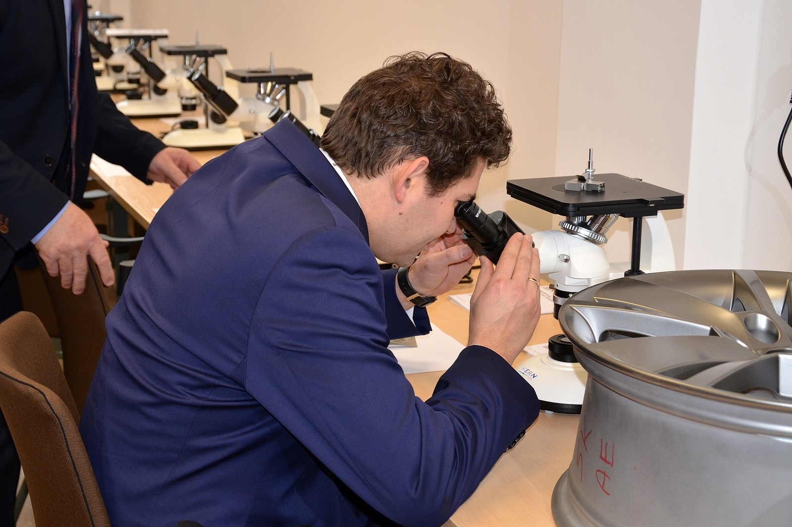 Rektor Politechniki Rzeszowskiej wraz z zaproszonymi na uroczystość gośćmi odwiedzili sale laboratoryjne Wydziału Mechaniczno-Technologicznego, w których mieści się nowoczesna aparatura badawczo-pomiarowa.
