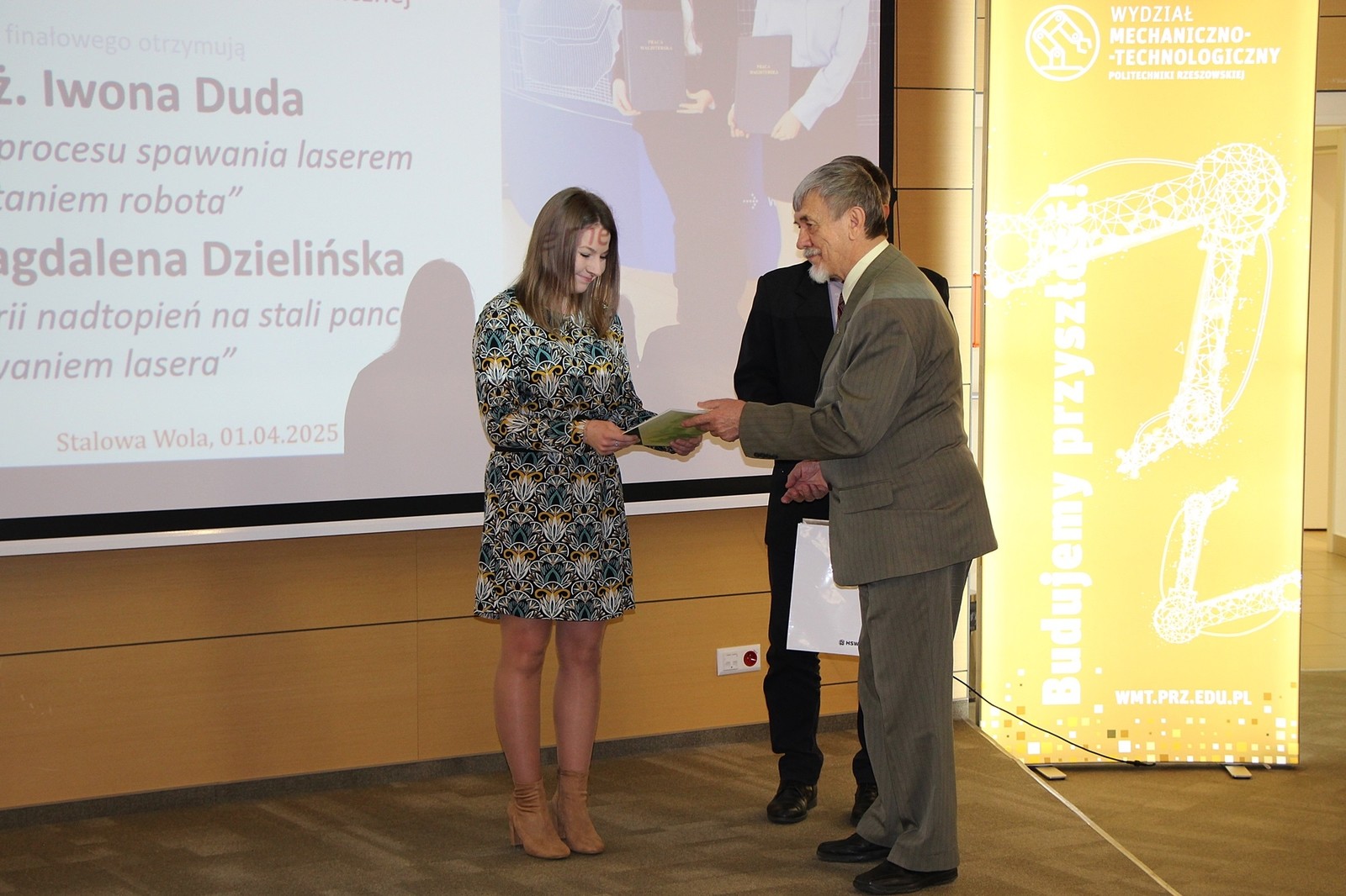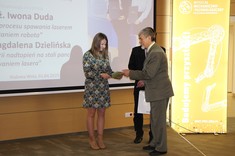 Dyplomy uznania otrzymały: Pani mgr inż. Iwona Duda za pracę pt. „Sprawność cieplna procesu spawania laserem z wykorzystaniem robota” oraz Pani mgr inż. Magdalena Dzielińska za pracę pt. „ Kształtowanie geometrii nadtopień na stali pancernej z zastosowaniem lasera”.