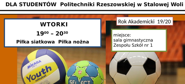 Zapraszamy na zajęcia fakultatywne dla studentów Politechniki Rzeszowskiej w Stalowej Woli - piłka nożna i piłka siatkowa.